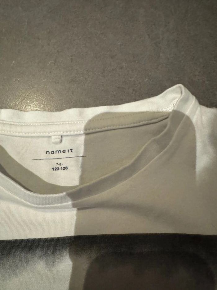 T shirt manches courtes Marque: Nameit Modèle: Norisk skating / Skatecity / NMT Denim / Tête de chien avec casquette Couleurs: Blanc, noir & rouge Taille: 7/8 ans Très bon état (voir les photos) D'autres articles de marques pour garçon dans mon inventaire