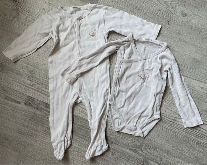 Ensemble pyjama fin et body à manches longues de la marque Mots d’enfants Taille 6 mois Traces d’utilisation Occasion, bon état