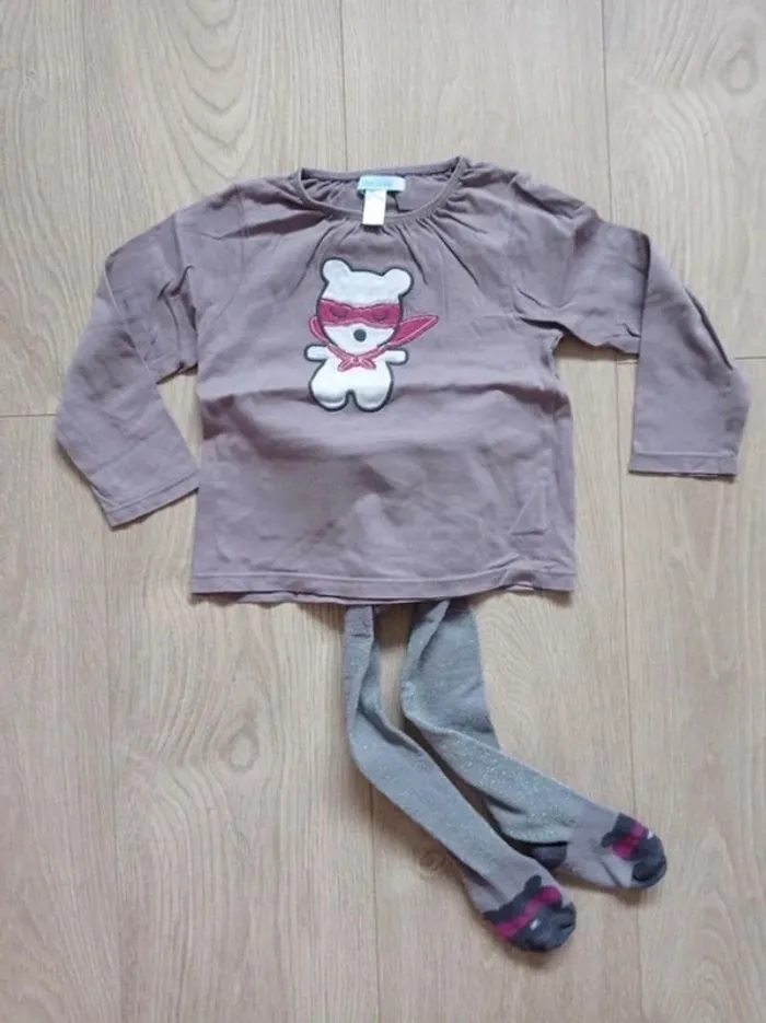 Ensemble tee-shirt Violet avec collants Obaïbi 23 mois 86 cm - photo numéro 1