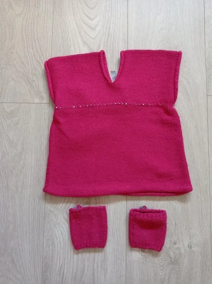 Robe framboise ruban gris avec guêtres laine Partner Phildar 6 mois - photo numéro 1