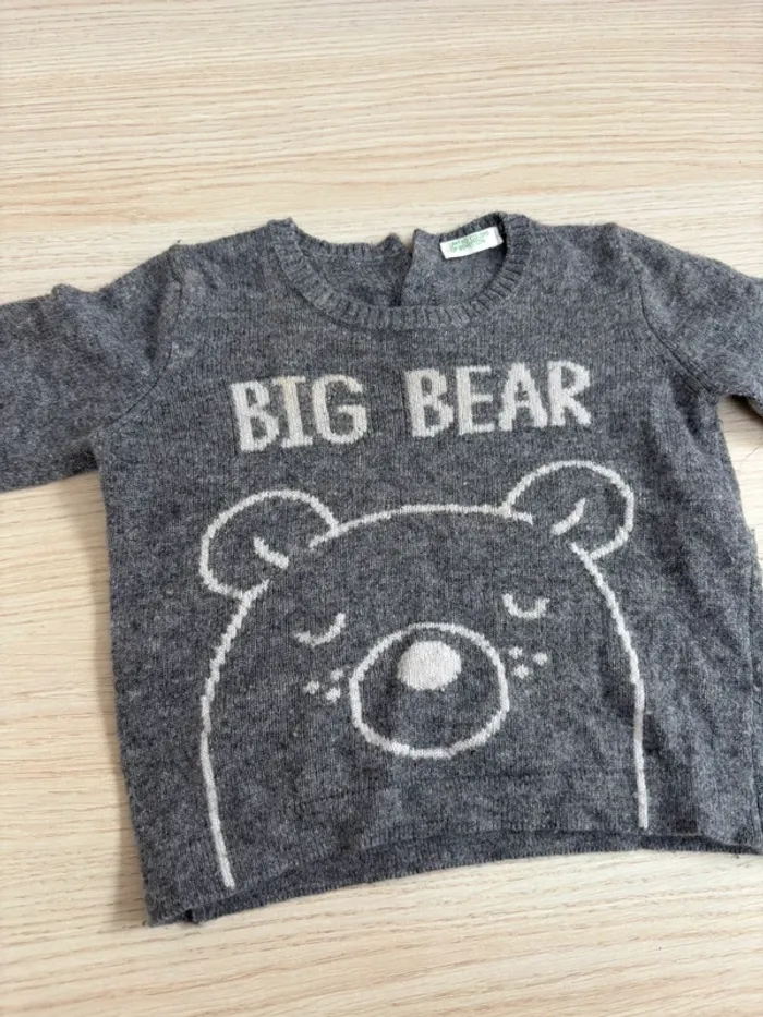 Pull gris big bear Benetton taille 3-6 mois - photo numéro 1