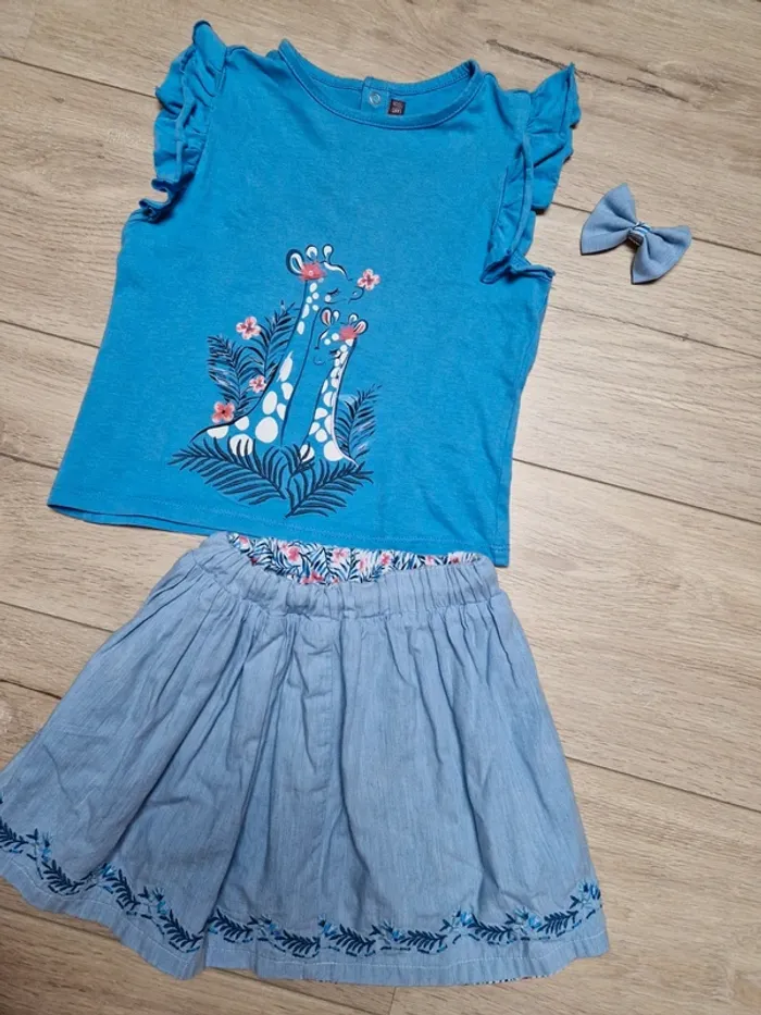 Ensemble fille de chez Sergent Major Thème : Mille et un palmier 🌴 - un T-shirt MC avec manches froufrous, 5 ans - une jupe réversible 4 ans - une barrette assortie réalisée par une créatrice sur pince croco L'ensemble est super sympa porté Le tout convient parfaitement à un petite fille qui porte du 4 ans. Très bon état Mon dressing est rangé par taille. Pour voir tous mes vêtements et accessoires de 4 à 5 ans, cliquez sur les liens #celine_yiyi_4a #celine_yiyi_5a ATTENTION pour que les liens fonctionnent, pensez à supprimer vos filtres et recherches 😊