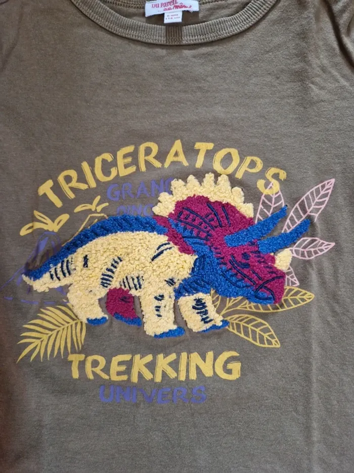 T-shirt dinosaure Tricératops Flocage impeccable, comme neuf Taille 6 ans Mon dressing est rangé par taille. Pour voir tous mes vêtements et accessoires en 6 ans, cliquez sur le lien #celine_yiyi_6a ATTENTION pour que les liens fonctionnent, pensez à supprimer vos filtres et recherches 😊