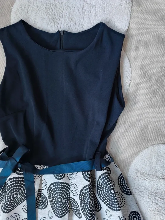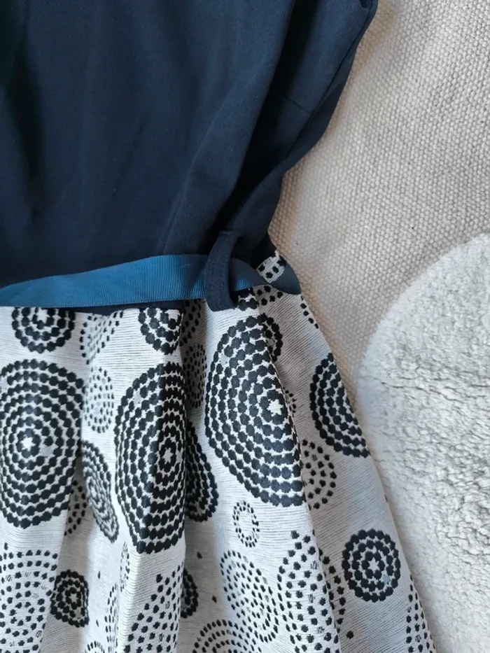 Robe sans manches élégante et originale : 🔹 Haut bleu marine cintré, avec encolure simple et fermeture invisible dans le dos 🔹 Jupe évasée gris clair à motifs cercles bleu marine, tissu structuré 🔹 Ceinture ruban bleu marine à nouer à la taille pour une silhouette flatteuse 🔹 Fabriquée en Italie, très belle qualité 📏 Taille 42 – coupe qui convient aussi à un petit 44 🧼 En excellent état – portée une fois 💡 Idéale pour un mariage, une cérémonie, ou une tenue chic au quotidien. 📦 Pensez à consulter mes autres annonces pour composer un lot facilement #ecirdney_femme_taille_l #ecirdney_femme_taille_m #RobeItalienne #RobeÉlégante #Taille42 #ecirdney_robe