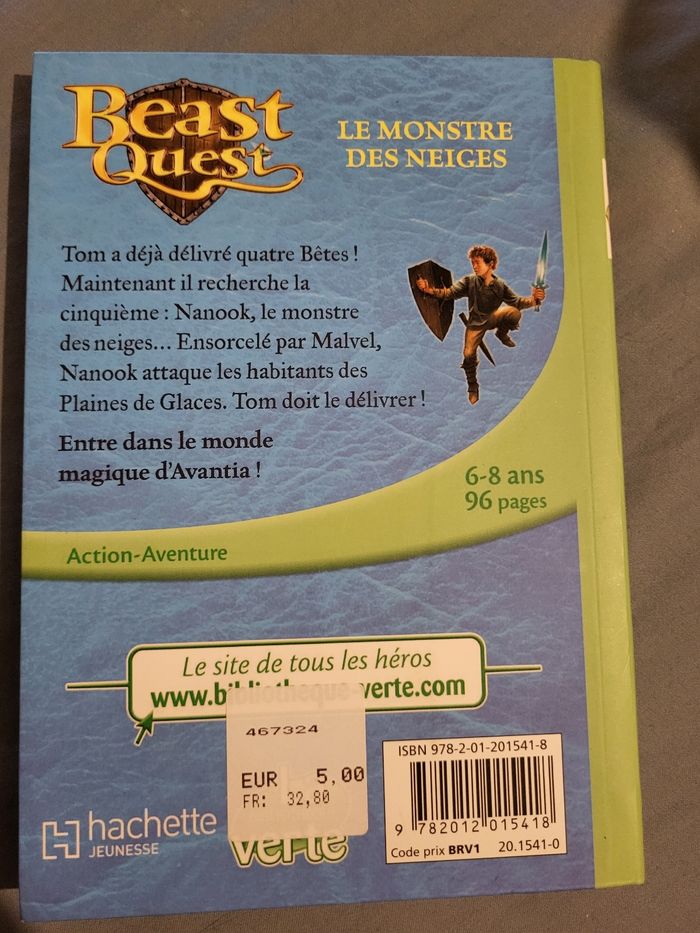 Beast Quest Tome 5 Le monstre des neiges bibliothèque verte Attention il y a le nom de l'enfant et une date sur la couverture intérieure. Couverture légèrement abîmée (rayée)