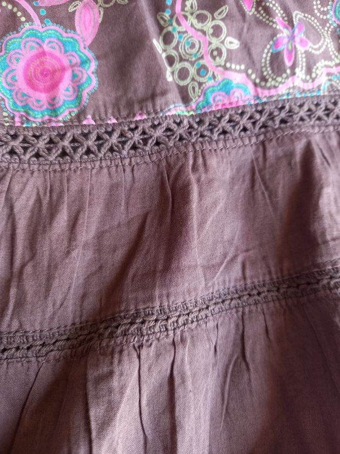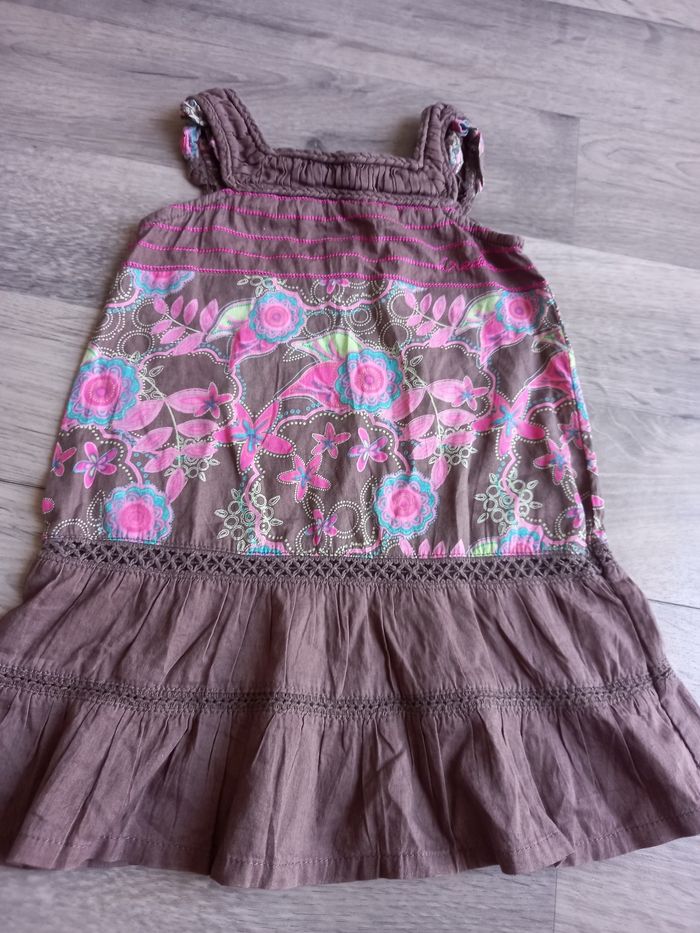 Petite robe été, marron a fleurs roses, légère , aucun défaut, ferme avec boutons dans le dos