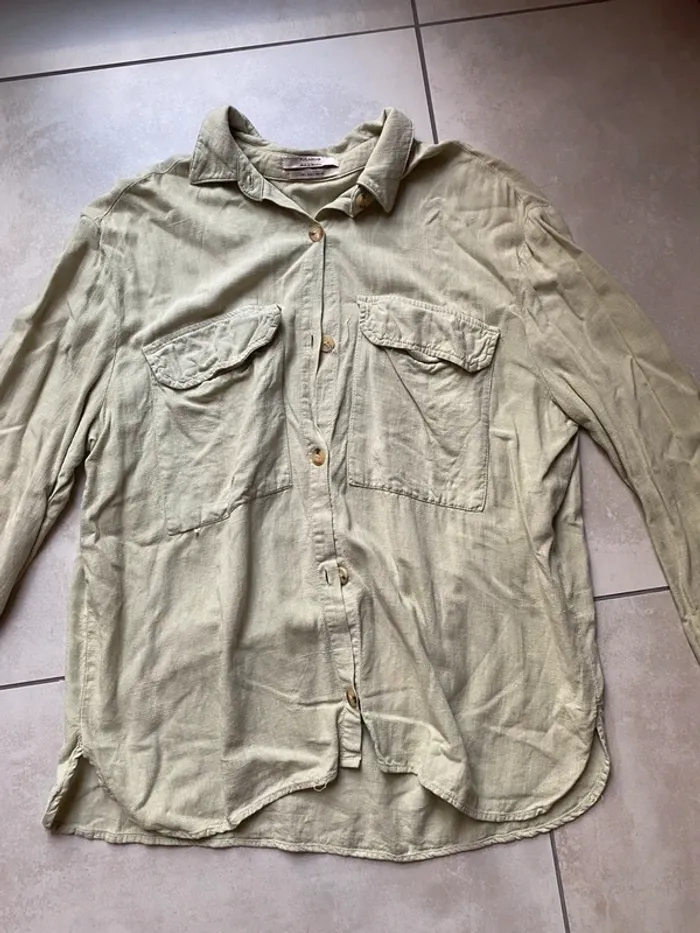 Blouse manches courtes / longues L 40 verte claire kaki Pull & bear - photo numéro 1
