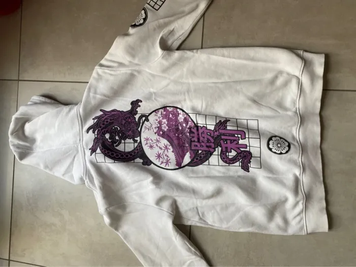Sweat blanc violet imprimé dragon Bershka M - photo numéro 11