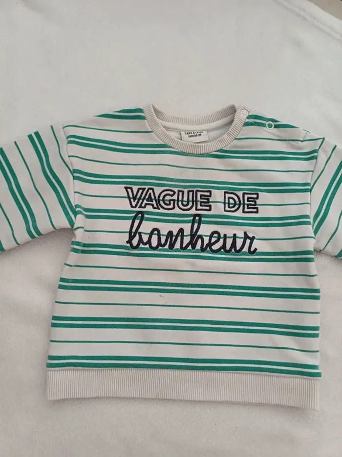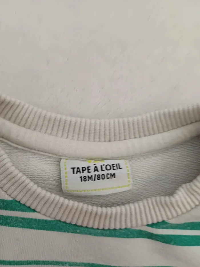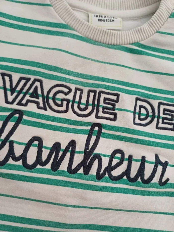 Sweat blanc rayures vertes 18 mois Tape a l'œil "Vague de bonheur" #18mois #18moisgarçon #18moislexou_77 #tao18mois