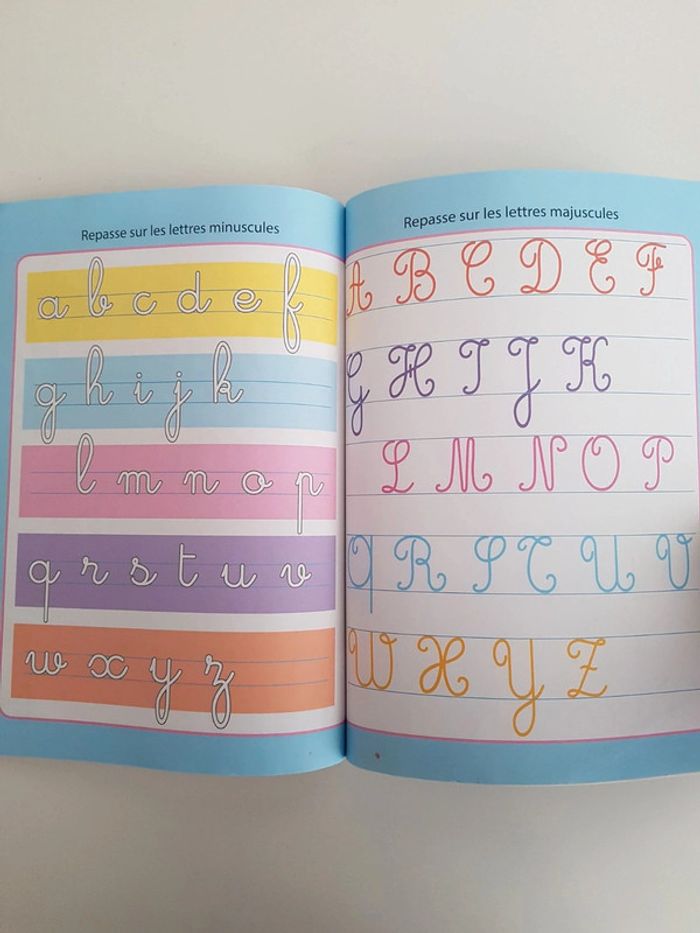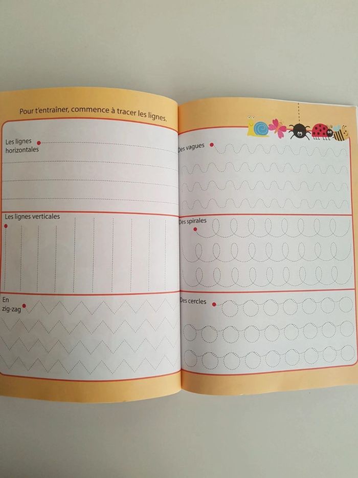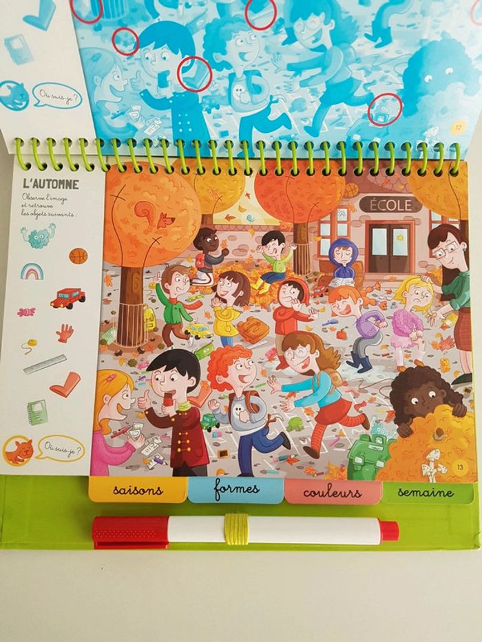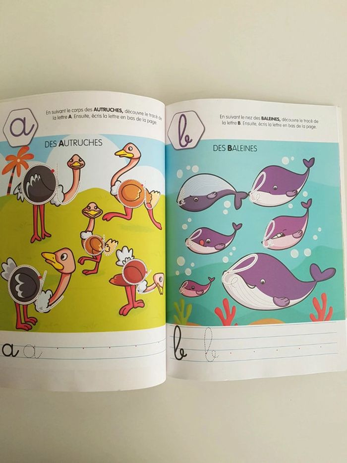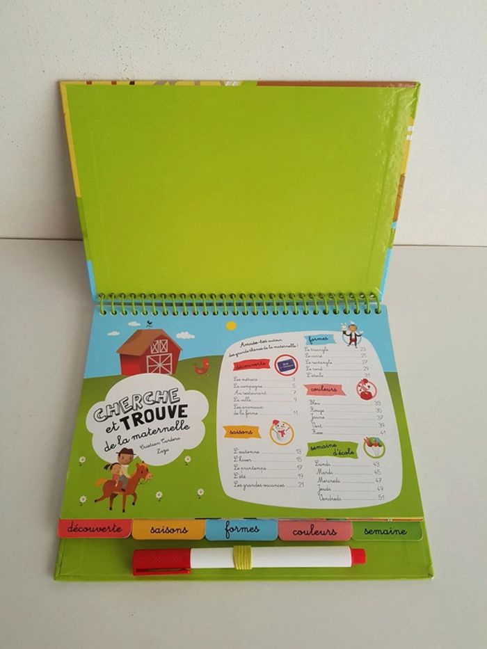 Lot de 4 livres d'activités destinés aux enfants de 3 à 6 ans • Cherche et trouve de la maternelle, Auzou 25 pages plastifiées, plus de 200 détails à trouver pour découvrir les saisons, les formes, les couleurs, les jours de la semaine Dimensions : 23 × 19 cm • Zou La vie de A à Zèbre numéro 2 Le jardin de Zou Avec 50 autocollants • Toupie, Joyeux Noël Petit ourson 1 jeu est déjà fait, album usé • Je trace les lettres avec les animaux Pour apprendre à tracer et écrire facilement toutes les lettres de l'alphabet en attaché Dimensions : 21 × 29,5 cm