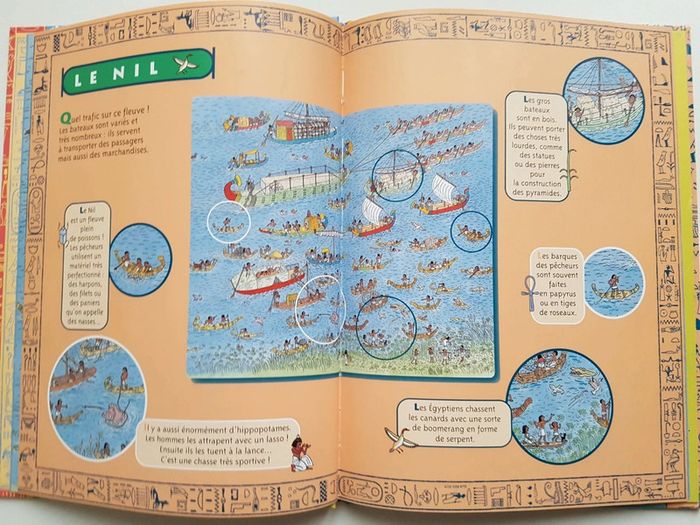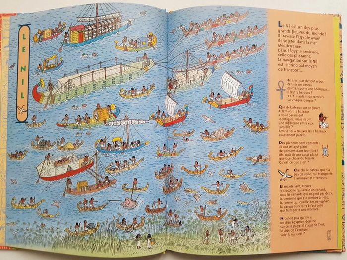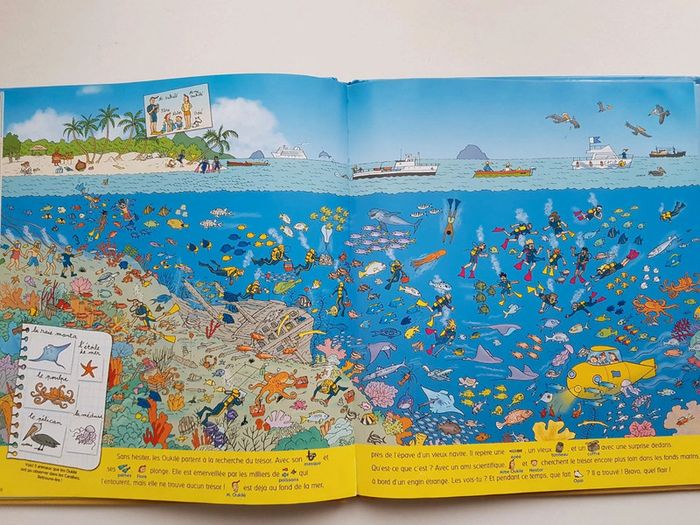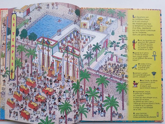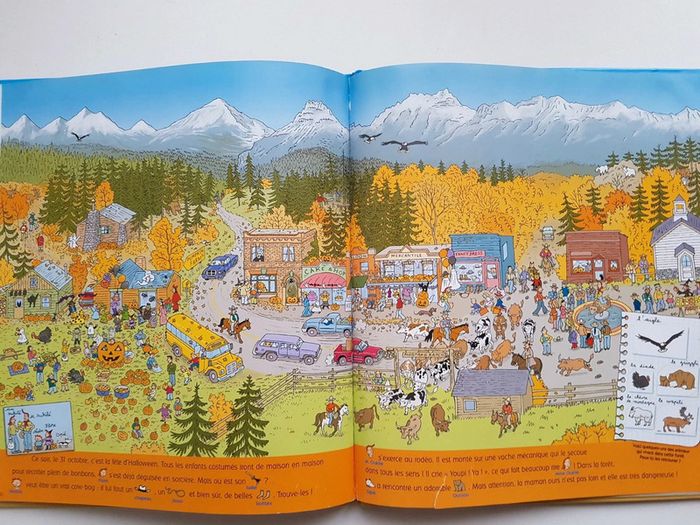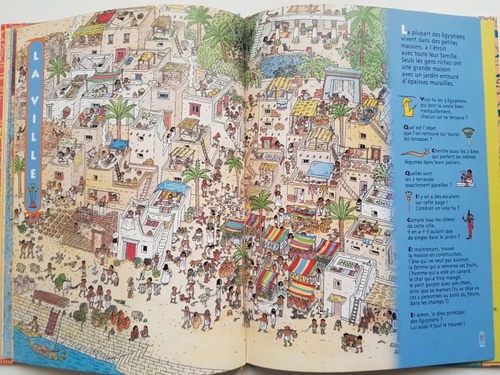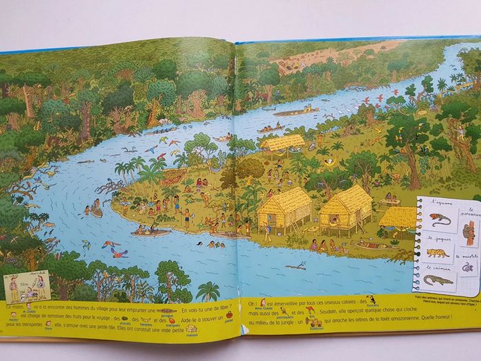 Chercher des détails dans les illustrations qui fourmillent de personnages et d'objets stimule de manière ludique le sens de l'observation, le goût de la recherche et le vocabulaire