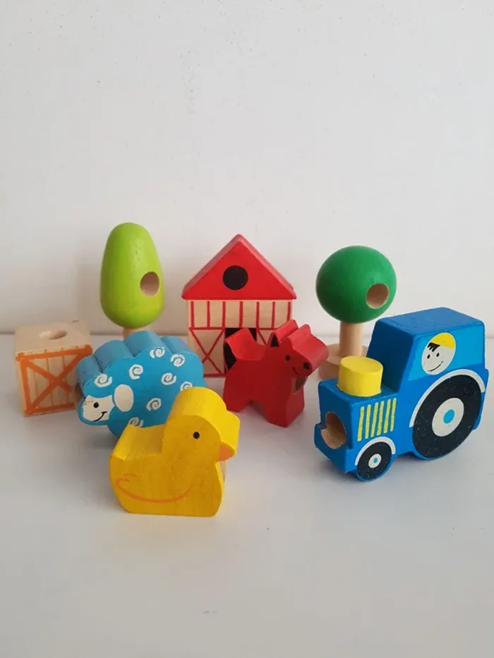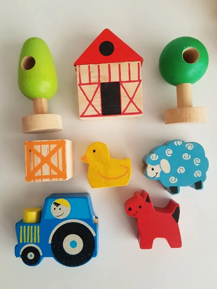 Perles jumbo en bois formes, couleurs et ferme - photo numéro 1