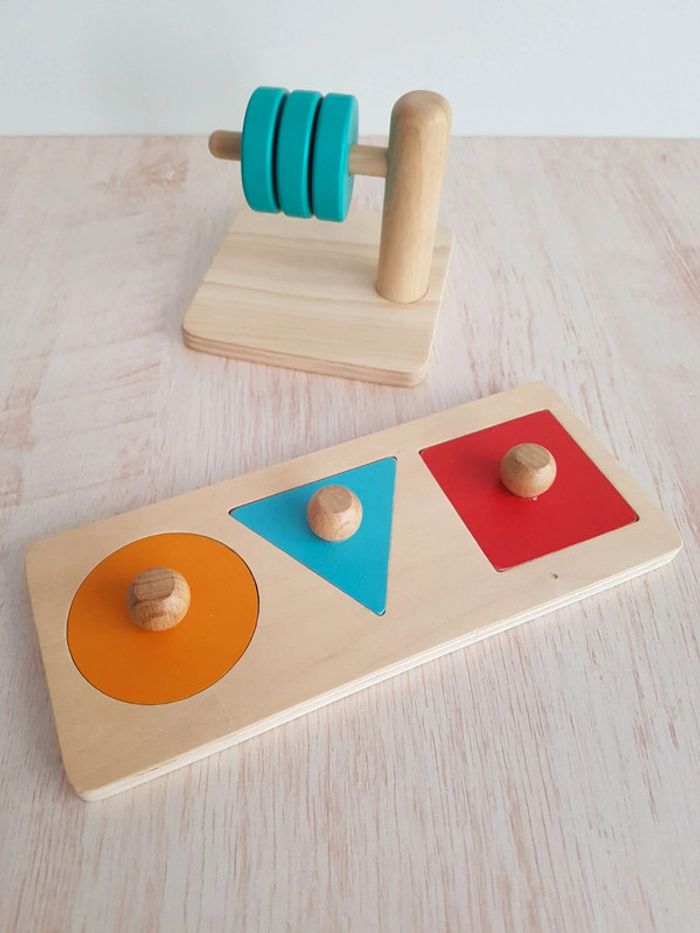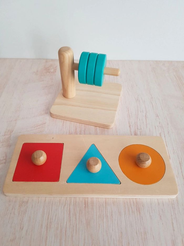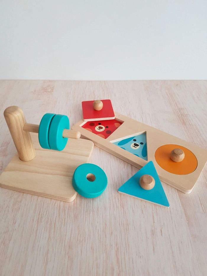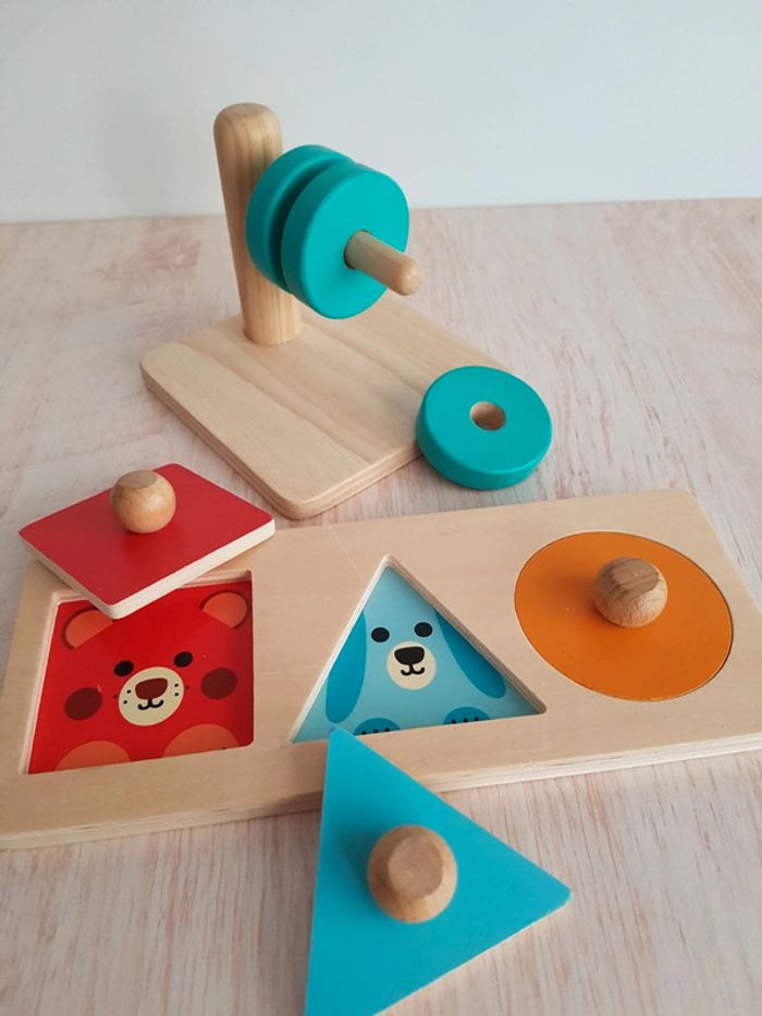 Puzzle trio Djeco et jeu disques à enfiler en bois - photo numéro 1
