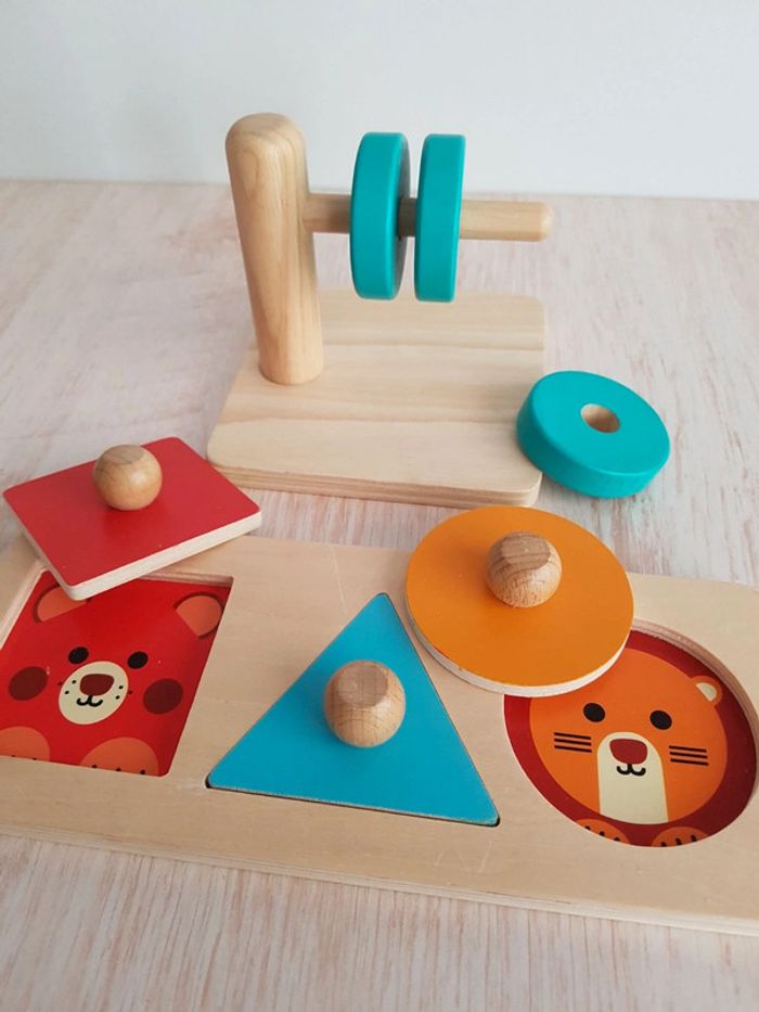 Puzzle trio Djeco et jeu disques à enfiler en bois - photo numéro 9