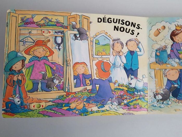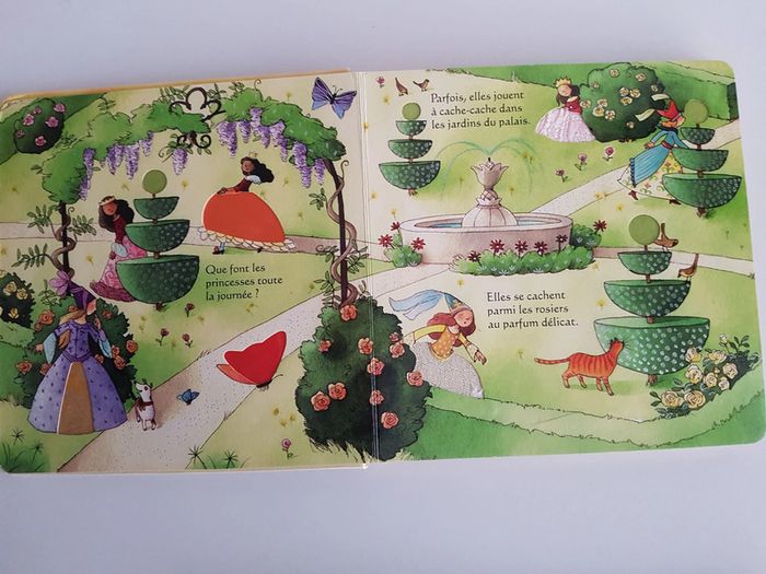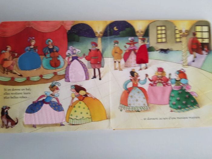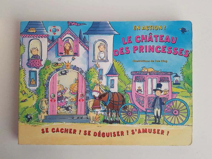 Lot de 2 livres à toucher et à animer qui ont beaucoup plu et sont un peu usés _ Les princesses Une découverte du monde enchanté des princesses avec ce joli album tout doux et scintillant De belles textures à toucher : plumes des cygnes, tissu des robes ... Dimensions : 21,5 × 21,5 cm _ Le château des princesses Livre en carton en bon état Un livre animé pour se cacher, se déguiser et s'amuser en suivant 2 princesses turbulentes dans leur château Des illustrations colorées et détaillées avec pleins de surprises.
