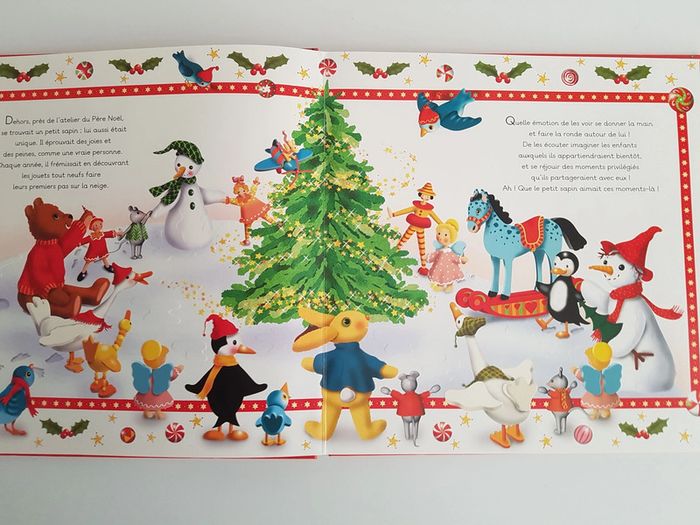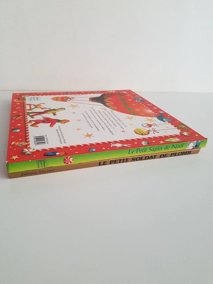2 livres sur la magie des fêtes de Noël _ Le petit sapin de Noël Le petit sapin se lamente d'être seul le jour de Noël. Les jouets du Père Noël décident d'offrir à leur ami un merveilleux cadeau... Un conte magique, enrichi de paillettes et imprimé sur papier gaufré avec des dessins somptueux Images pleines de couleurs et en relief Le conte plein de tendresse, 100% noël version pôle nord, chante les louanges du partage Les angles sont abîmés Dimensions : 30,5 × 30,5 cm _ Le petit soldat de plomb et autres histoires Contes et fables du monde entier : - Le vaillant petit soldat de plomb - Jack et le haricot magique - Les habits neufs de l'empereur...