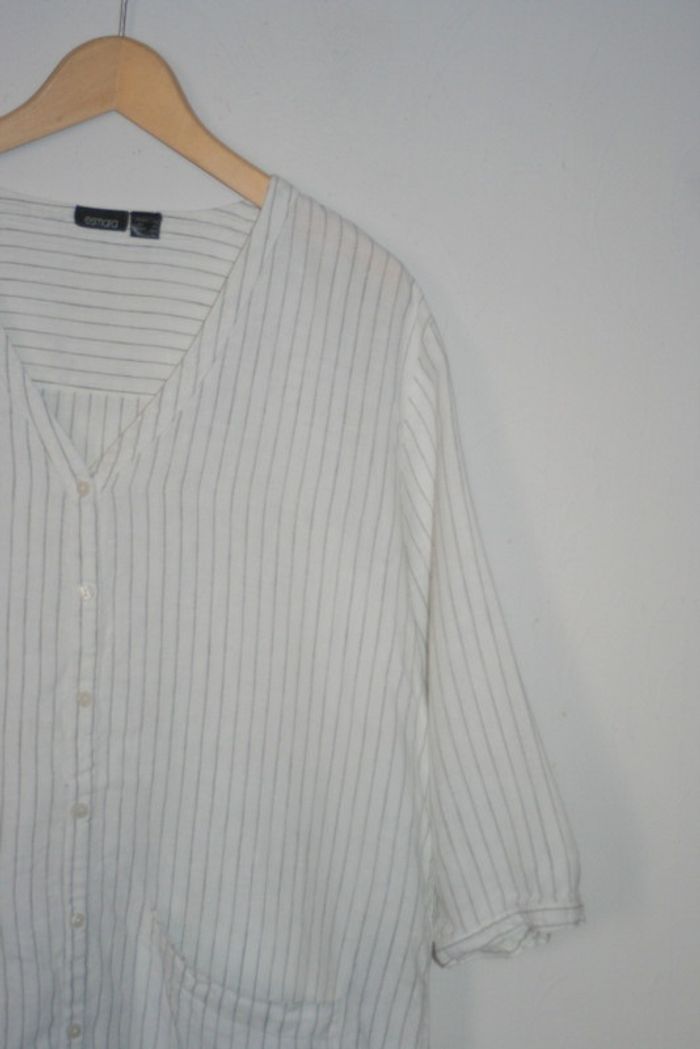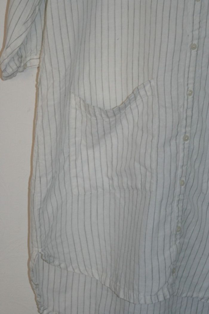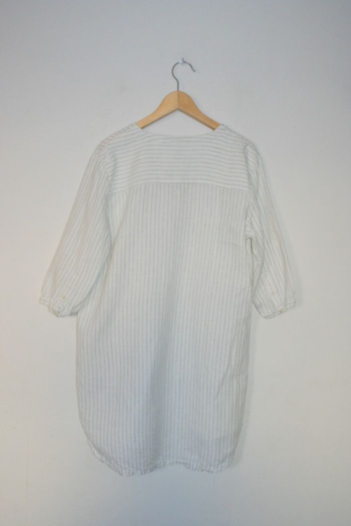 Robe chemise rayée manches 3/4 marque Esmara, taille 46, 100% lin, 43cm d'épaule à épaule, 55cm d'aisselle à aisselle, 86cm de long à l'avant et 93cm de long à l'arrière, 320g