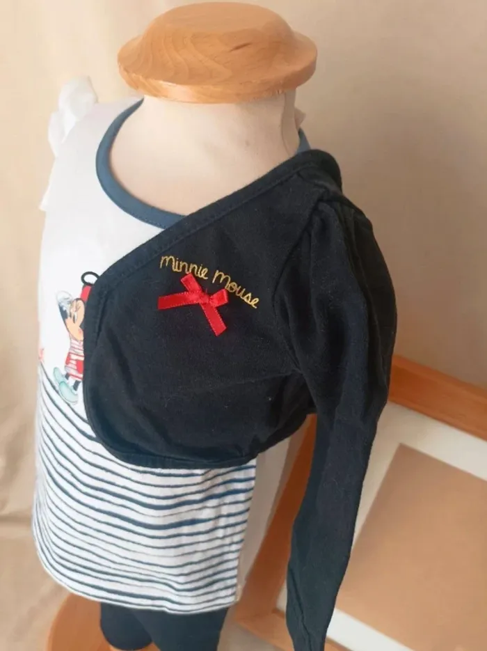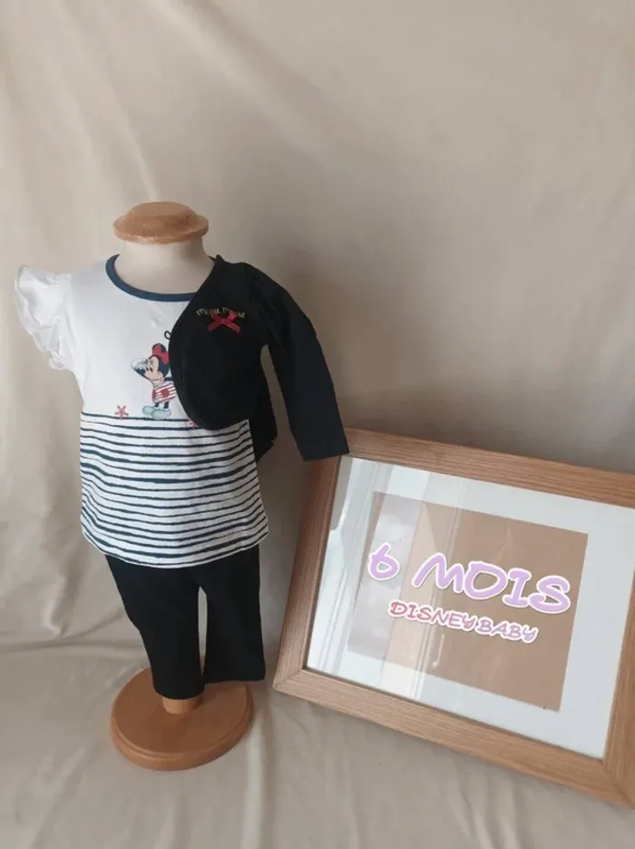 🗃️ Boléro, tee-shirt et jegging 📏 Taille 6 mois 🔖 Marque Disney Baby 🎨 Coloris noir et blanc 📌 Très bon état 📝 Informations complémentaires : Boléro noir se fermant par un unique bouton doré Tee-shirt rayé bleu et blanc avec volants sur les épaules Jegging noir avec taille élastique et rcussion Minnie sur l'arrière ☀️ Remises activées dès 2 articles achetés 🆕 Nouveautés ajoutées régulièrement sur le dressing 📦 Envoi rapide et soigné #Marjoriedu76170Lison6mois #disneybaby6moisfille #6moisfille #ensemble6moisfille #minnie6moisfille