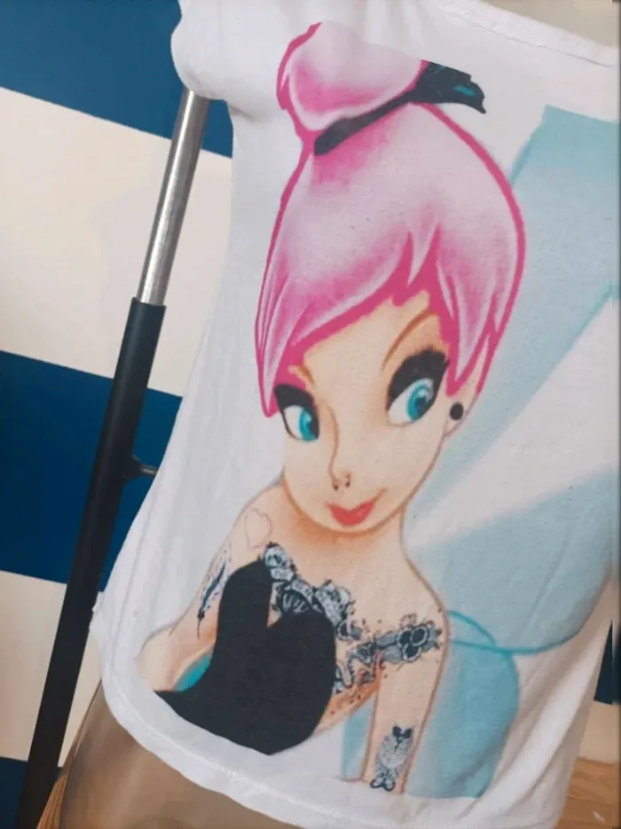 Tee-shirt manches courtes blanc thème fée clochette gothique femme taille 38 - photo numéro 1