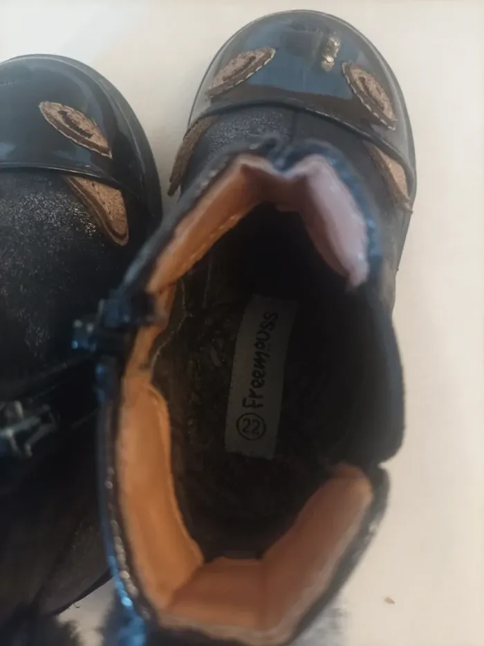 🗃️ Bottines à bout vernis 📏 Taille 22 🔖 Marque Freemouss 🎨 Coloris noir 📌 Très bon état 📝 Informations complémentaires : Petit pompon à l'arrière de la chaussure Petit chat sur le bout vernis ☀️ Remises activées dès 2 articles achetés 🆕 Nouveautés ajoutées régulièrement sur le dressing 📦 Envoi rapide et soigné #Marjoriedu76170chaussures #freemouss22 #pointure22fille #bottines22fille