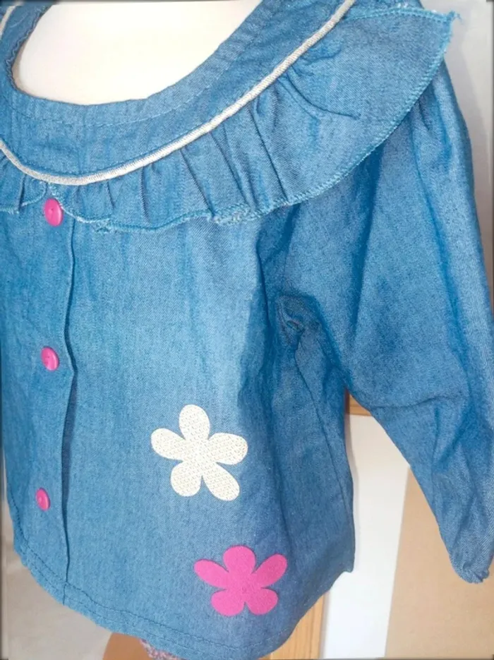 Superbe blouse manches longues effet jean neuve Mots d'Enfants fille 6 mois - photo numéro 1