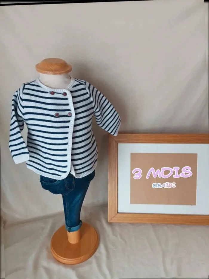 Superbe gilet brassière style marinière neuf Obaïbi mixte 3 mois - photo numéro 1