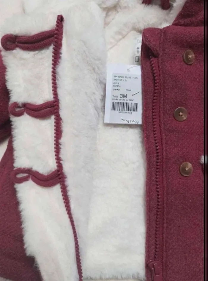 🗃️ Manteau à capuche 📏 Taille 3 mois (60 cm) 🔖 Marque Vertbaudet 🎨 Coloris rose foncé 📌 Neuf avec étiquette 📝 Informations complémentaires : Manteau fourré idéal pour l'hiver Poches sur le devant fourré Contient de la laine Encore étiqueté à 47€99 ☀️ Remises activées dès 2 articles achetés 🆕 Nouveautés ajoutées régulièrement sur le dressing 📦 Envoi rapide et soigné #Marjoriedu76170Lison3mois #vertbaudet3moisfille #3moisfille #manteau3moisfille #neuf3moisfille