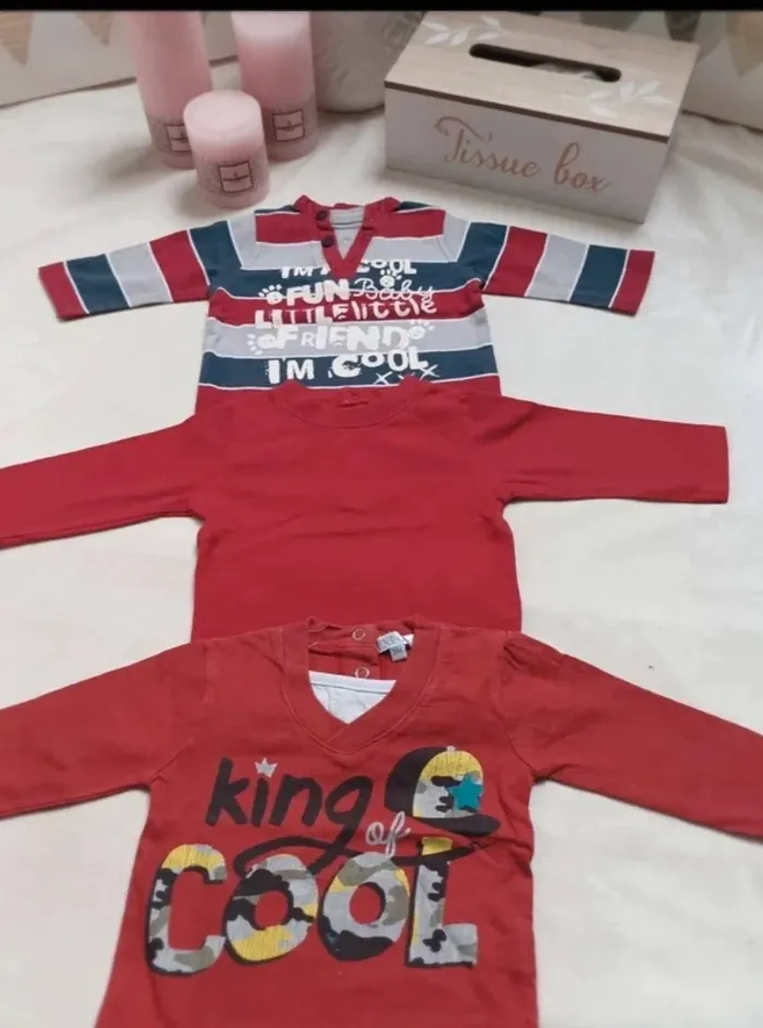 🗃️ Lot de 3 tee-shirts manches longues 📏 Taille 3 mois 🔖 Marque Mini Gang et 2 sans marque 🎨 Coloris rouge et blanc 📌 Très bon état (king of cool bon état) 📝 Informations complémentaires : Tee-shirt King of cool avec flocage un peu usé (voir photo 4) ☀️ Remises activées dès 2 articles achetés 🆕 Nouveautés ajoutées régulièrement sur le dressing 📦 Envoi rapide et soigné #Marjoriedu76170Nanou3mois #3moisgarçon #teeshirtmancheslongues3moisgarçon #lot3moisgarçon