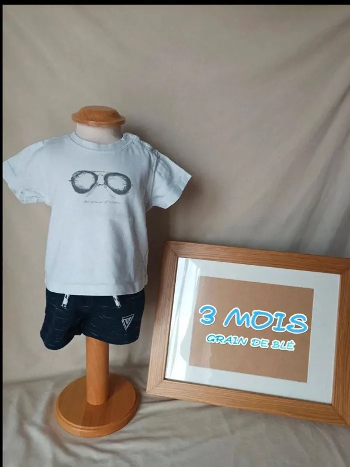 👕 T-shirt Manches Courtes Grain de Blé pour Bébé - Taille 3 Mois 👕 Craquez pour ce charmant t-shirt manches courtes de la marque Grain de Blé, parfait pour les petits garçons de 3 mois ! Conçu pour allier confort et style, il est idéal pour les beaux jours. 🔖 Caractéristiques : * Marque : Grain de Blé * Taille : 3 mois * Couleur : Blanc éclatant * Motif : Un motif graphique stylé représentant des lunettes d'aviateur, avec l'inscription pleine d'humour et de tendresse : "When I grow up I will be famous" (Quand je serai grand, je serai célèbre). * État : Excellent état Ce t-shirt apportera une touche d'originalité et de gaieté à la garde-robe de votre tout-petit. Facile à associer avec un short, un pantalon ou une salopette, il est parfait pour toutes les occasions, des sorties quotidiennes aux moments de détente à la maison. Offrez à votre bébé un vêtement confortable et plein de personnalité ! #Marjoriedu76170Nanou3mois #teeshirt3moisgarcon #3moisgarcon #graindeble3moisgarcon