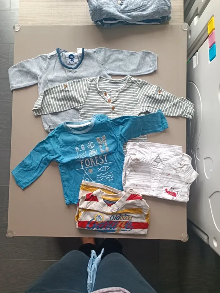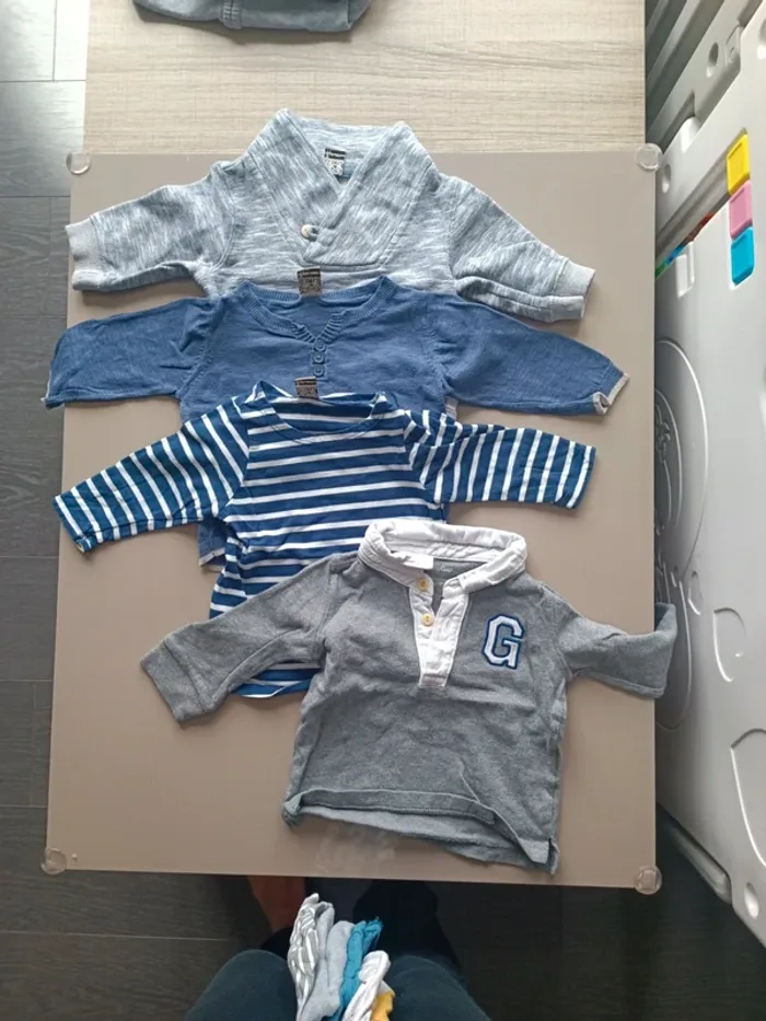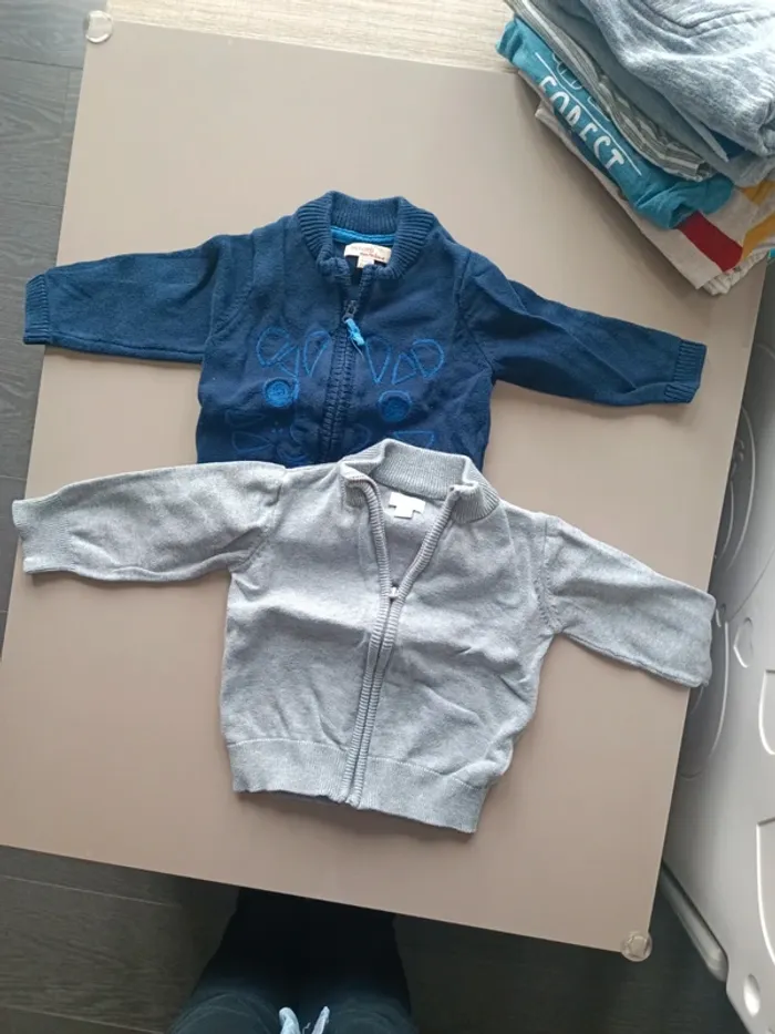 11 articles pull gilets (2) et tee shirts manches longues en 9 et 12 mois parfait état