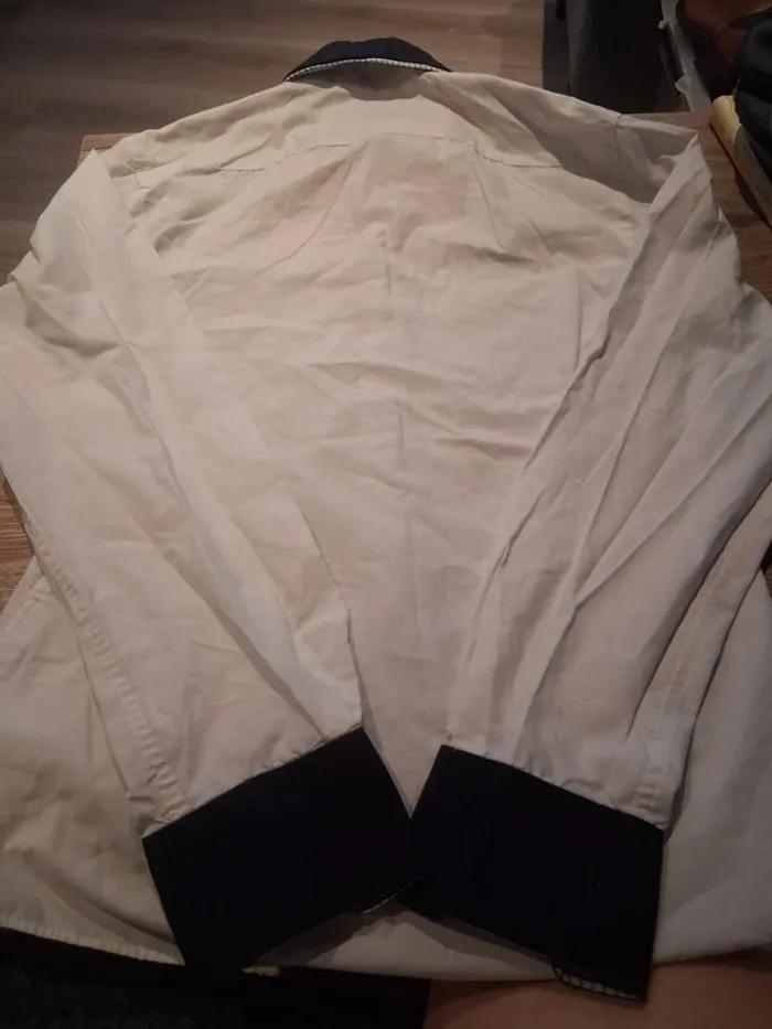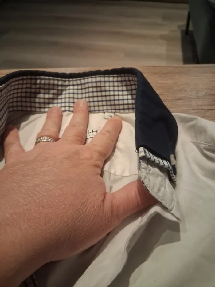 Bonjour, je vends cette chemise blanche col marine de la marque La Halle taille 40 en très bon état. Lavé maison non fumeur.