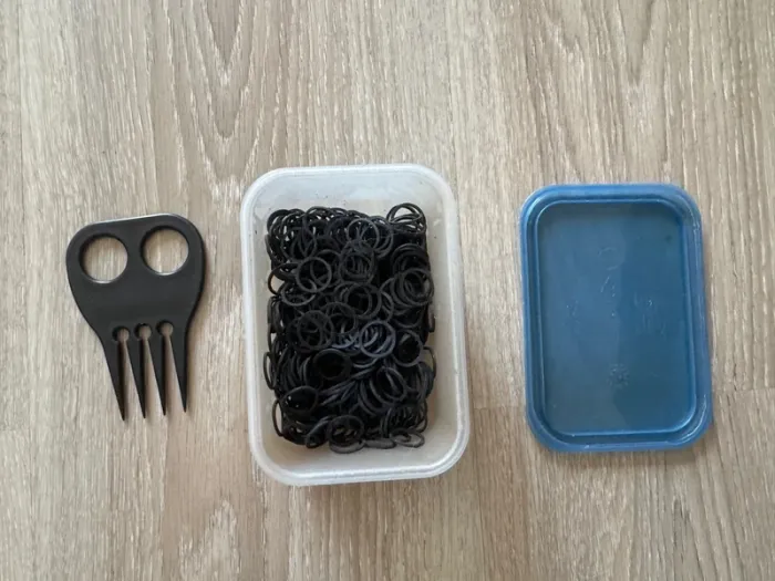Boîte d’élastiques noirs à pions pour chevaux et peigne noir pour pions. Le peigne a peu servi et les élastiques sont restés plusieurs années dans la boîte. Identique aux photos ✅ D’autres vêtements homme, femme, enfants, chaussures, dvd, livres, playmobil, affaires d’équitation… dans mon dressing, n’hésitez pas à aller faire un tour. 🛍️ Possibilité de faire des lots à petit prix sur demande, j’étudie toute proposition (sauf échange). 🤏🏼 N’hésitez pas à me contacter si vous avez des questions, les colis sont envoyés rapidement. 😉 Toutes mes mises en colis sont filmées donc aucune arnaque possible ! ❌