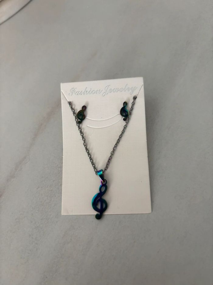 🎶 Parure bijoux fantaisie – collier & boucles d’oreilles clé de sol 🎶 - photo numéro 2