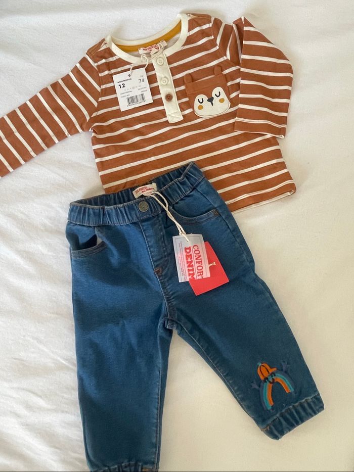 Ensemble garçon : jean taille élastique et t-shirt manches longues