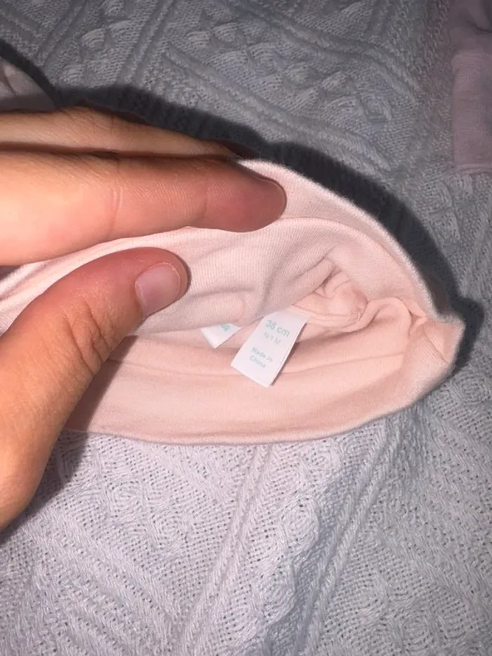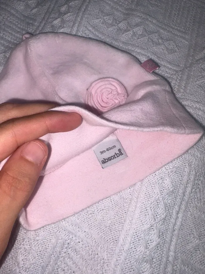 Lot de 4 bonnets Diverses tailles idéal pour la naissance Par exemple ma fille a porté le 3 mois à la naissance comme ça vous avez plusieurs taille si besoin Parfait état