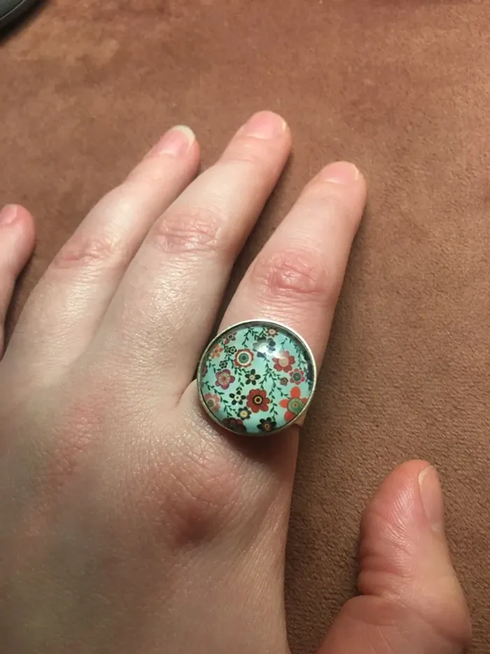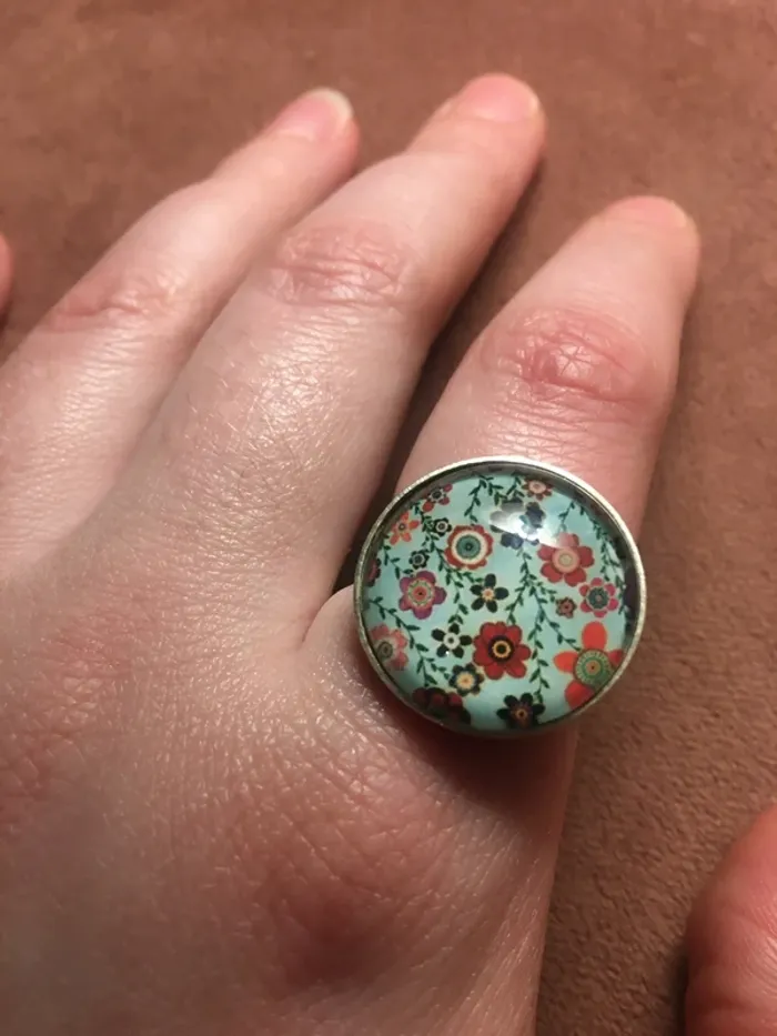 Bague cabochon fleurs - photo numéro 5