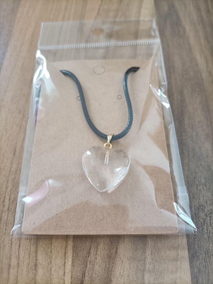 Collier cordon cuir et coeur blanc transparent neuf - photo numéro 2