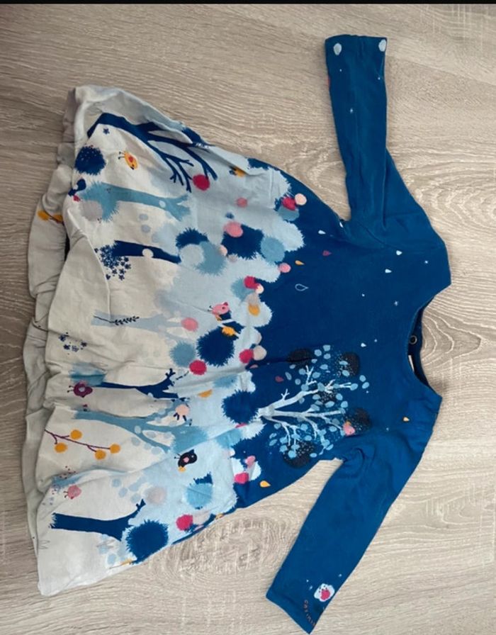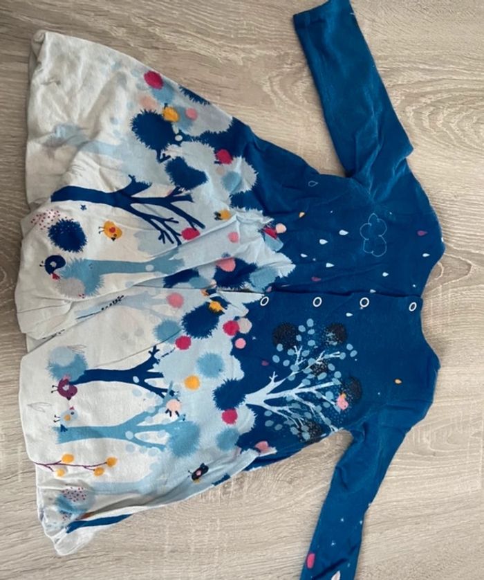 Robe bleue très bon état / robe écru neuve jamais portée juste lavée / Collant neuf Ensemble catimini idéal tenue de fête Noël comprend : 1 Robe fille manche longue catimini 9 mois 71 cm Bleue et motif oiseaux arbres fleurs 1 robe manche longue ecru du même thème 6 mois 1 paire de collant pinguin hiver assorti neuf taille 15-18 Vente à l’unité possible me contacter l ensemble du theme assorti est à vendre dans mon dressing