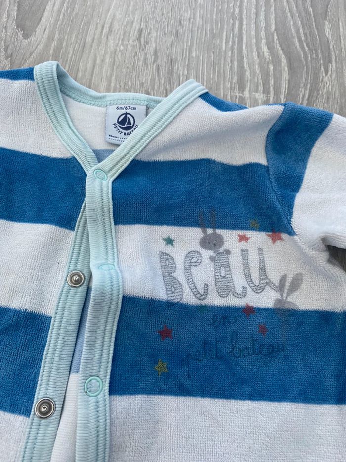 Parfait état Marinière bleu et blanc Petit bateau pyjama velours grenouillere 6 mois