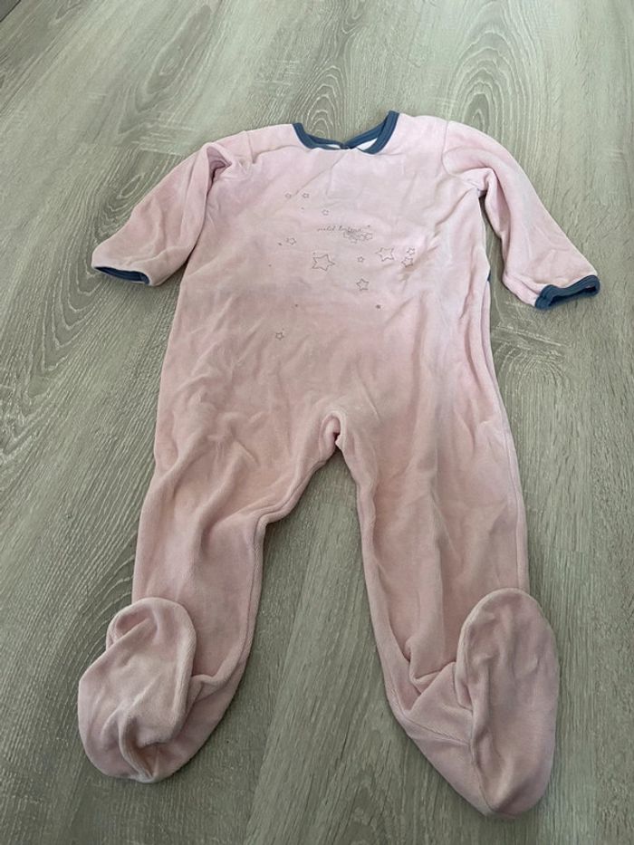 Neuf jamais porté juste lavé Pyjama velours chaud rose et bleu motif étoiles Petit bateau fille 18 mois 81 cm