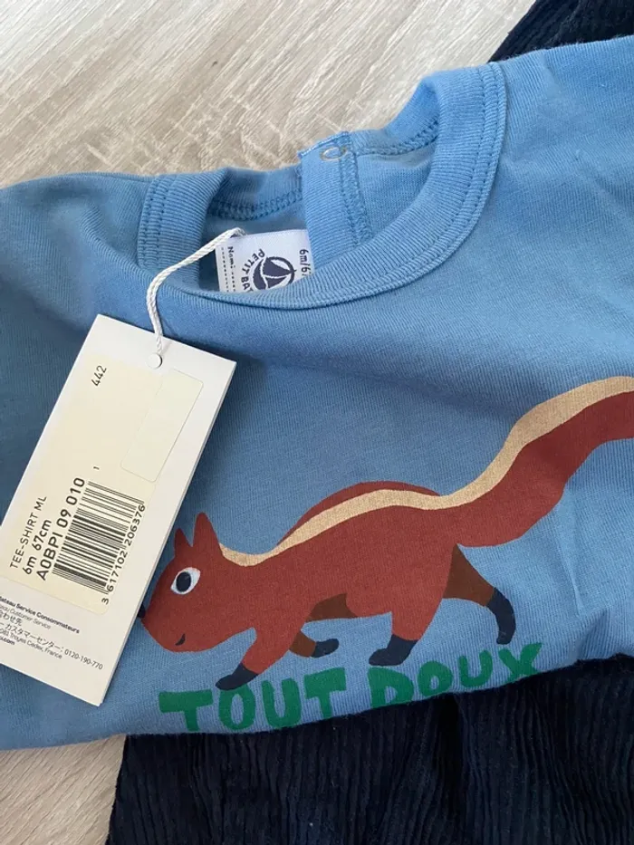 Neuf jamais porté avec coffret cadeau petit bateau cœurs 1 salopette bleue nuit velours côtelé 6 mois etiquette coupée mais jamais mise 1 t-shirt motif écureuil toujours avec etiquette 6 mois 67 cm Lot 2 paires de chaussette assorties 19/22 Parfait pour cadeau de naissance ou automne hiver bébé garcon
