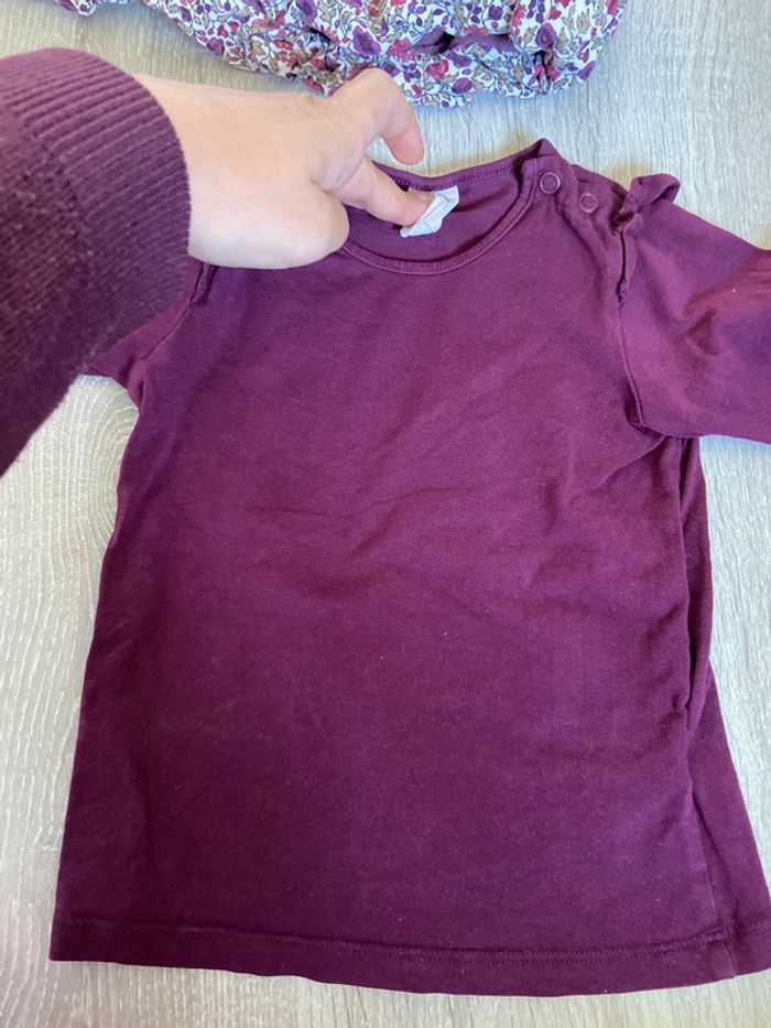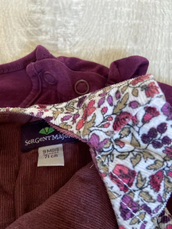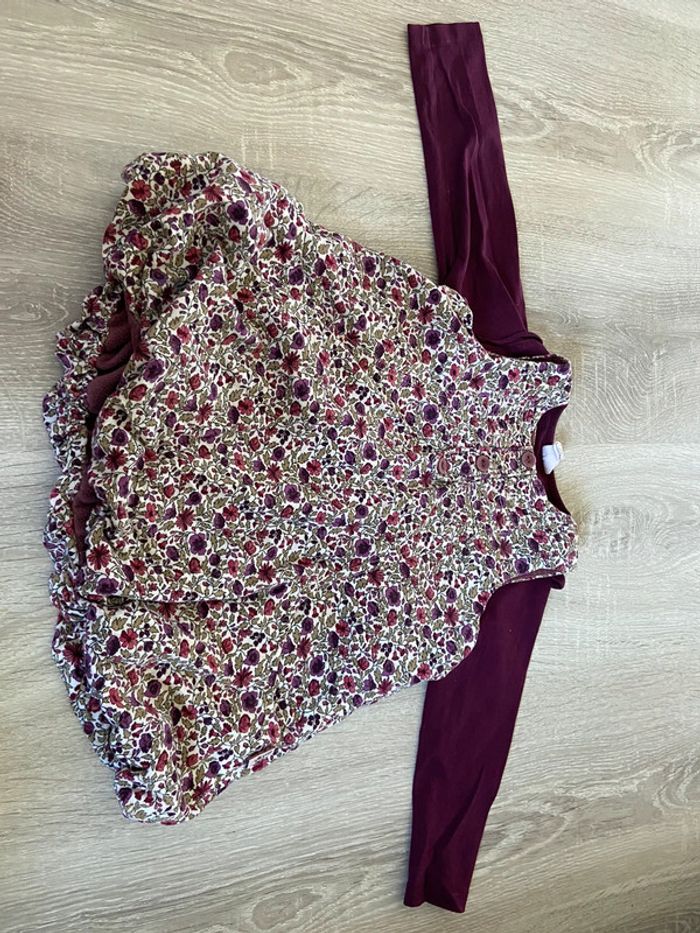Très bon état Peu porté Ensemble comprend 1 robe liberty fleurs sergent major epaisse hiver velour prune rouge vert blanc avec t shirt manche longue h et m asssorti prune Robe 9 mois 71 cm T shirt 9-12 mois