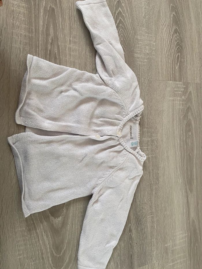 Très bon état Gilet blanc nacré brillant Obaibi 12 mois 74 cm