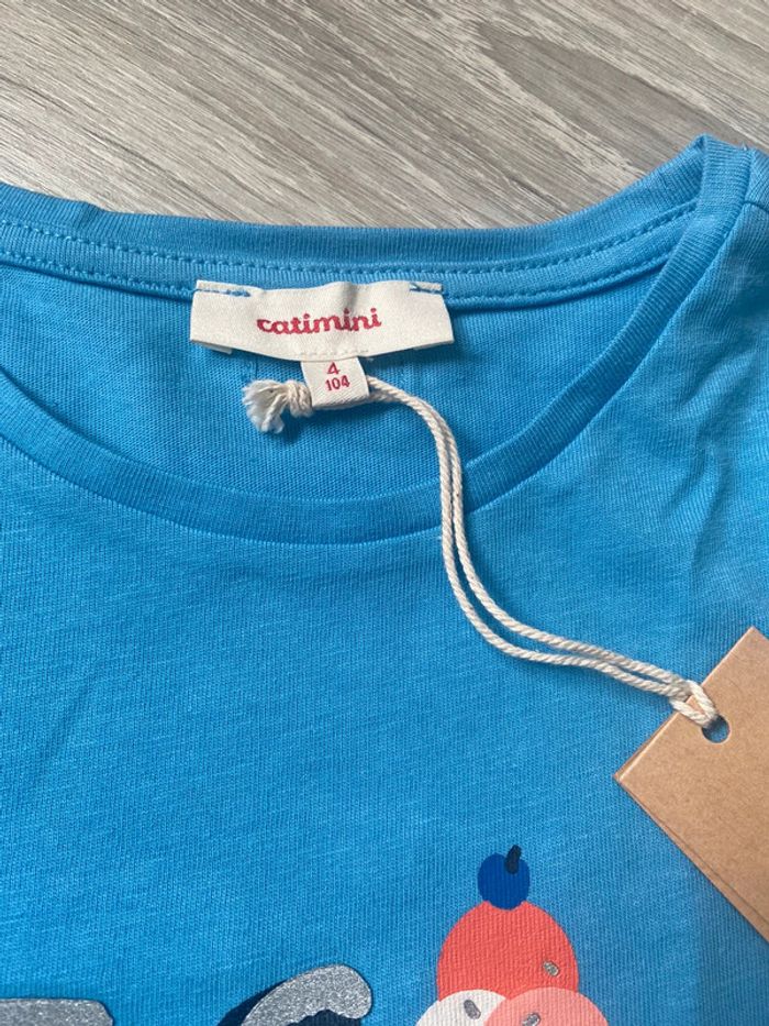 Neuf jamais porté t shirt bleu catimini Taille 4 ans 104 cm T shirt manche courte bleu motif espiègle glace