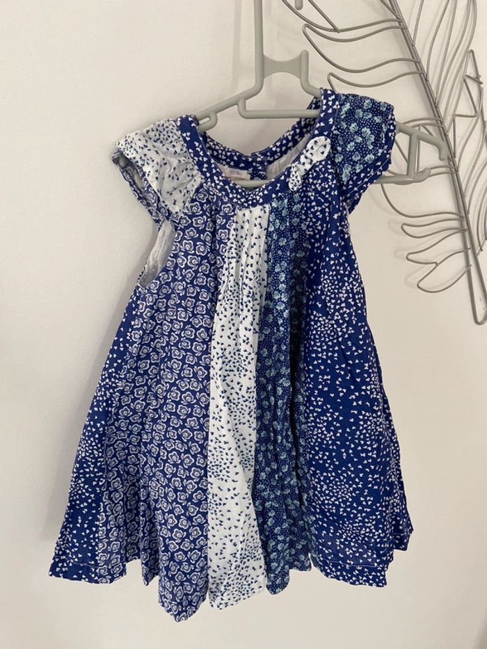 Tbe porté une seule fois comme neuf Robe manche courte été dpam taille 24 mois 86 cm Motif fleurs bleu et blanc