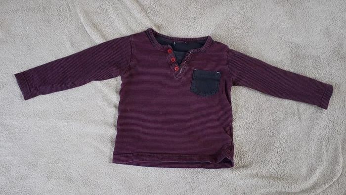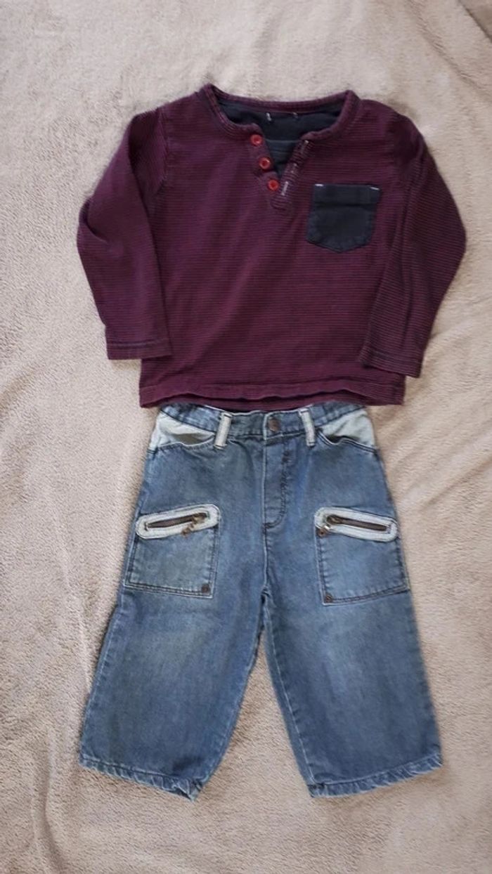 Jean obaibi + T-shirt manches longues rayé bordeaux / noir (tout petit accro a l'arrière) #virgy61garcon18mois