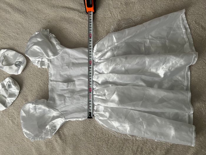 Déguisement Mariée Blanche - 4 ans 👰 Déguisement de mariée pour enfant, taille 4 ans. Idéal pour les fêtes, anniversaires, carnaval ou jeux d’imagination. Couleur : blanche 📏 Merci de bien vérifier les dimensions à l’aide du mètre visible sur les photos, pour éviter toute mauvaise surprise. 👉 N'hésitez pas à regarder mes autres annonces pour grouper vos achats 😉 Une réduction automatique est appliquée pour les lots. Je n'accepte donc pas d'offres supplémentaires sur les articles bénéficiant déjà d'une remise.