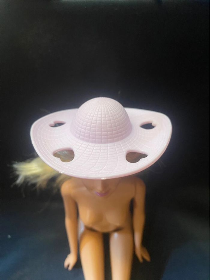 chapeau barbie mimi van. Par contre je trouve qu’il est juste à poser sur la tête( peut-être la Barbie de présentation a les cheveux trop épais) ne tient pas réellement en place. Année 1995