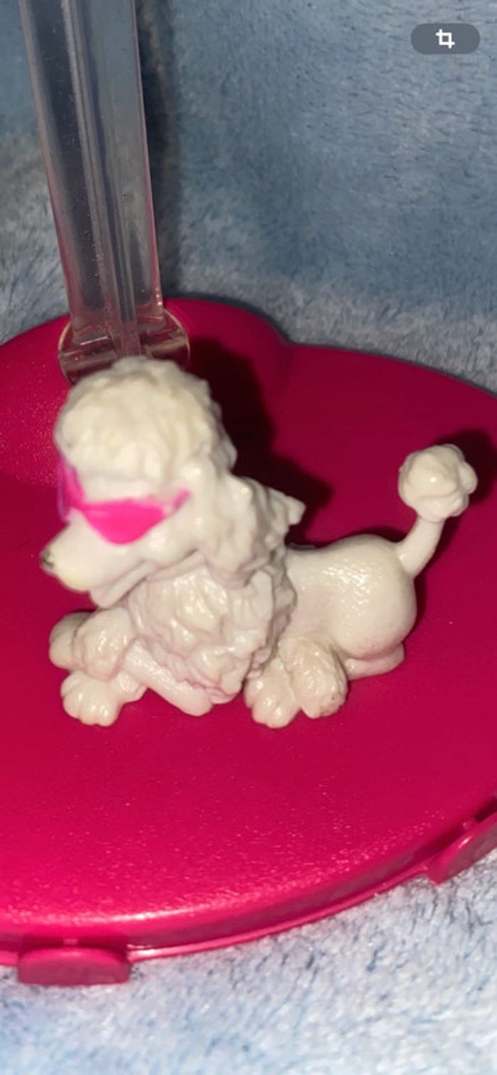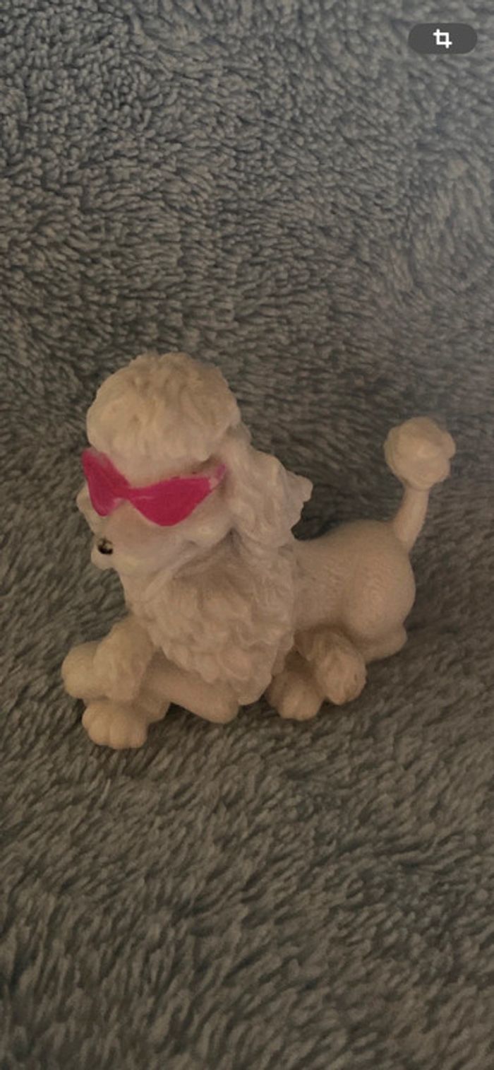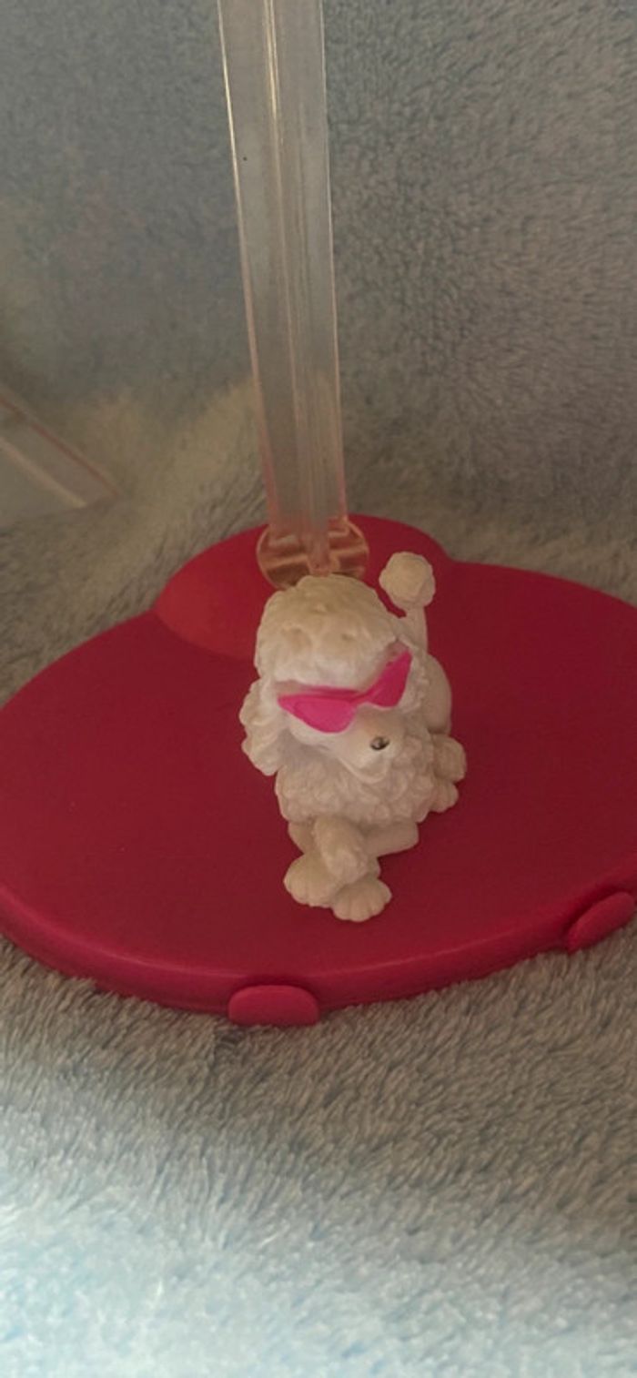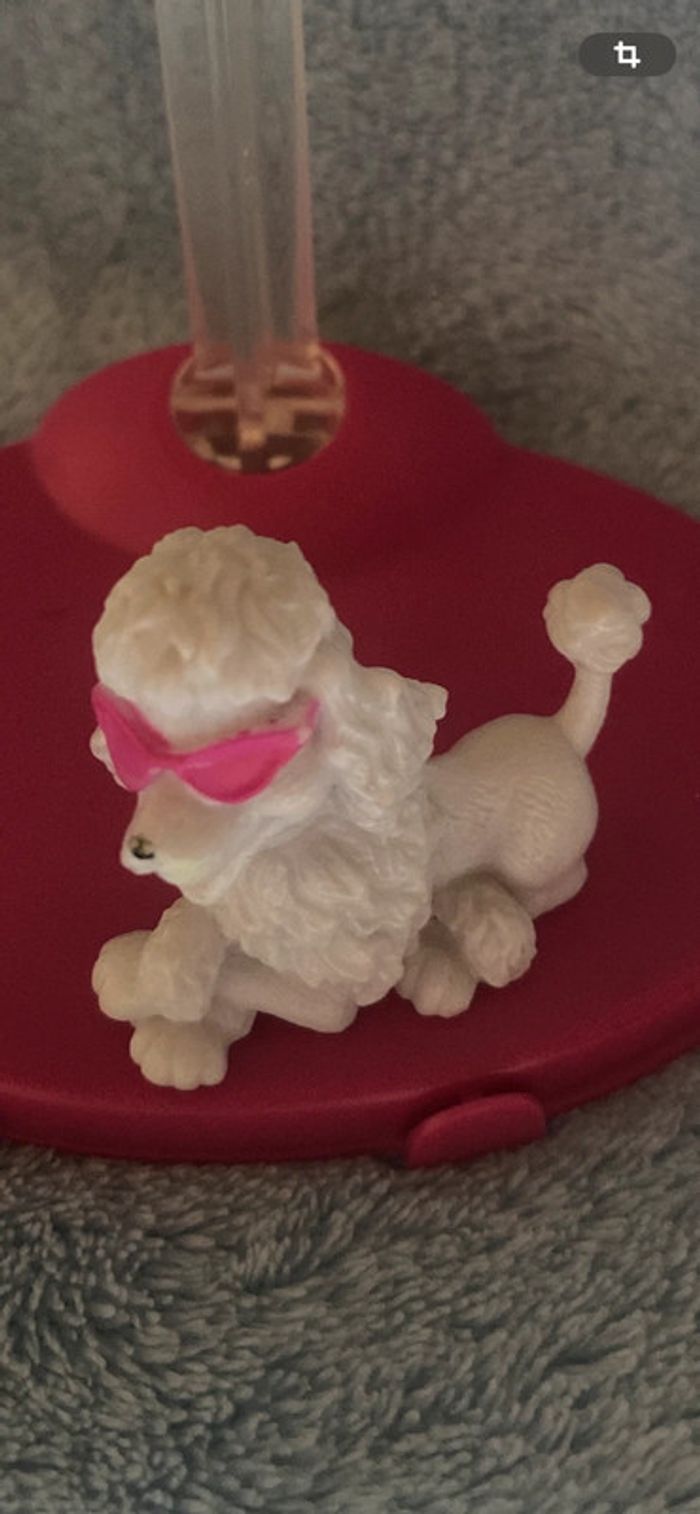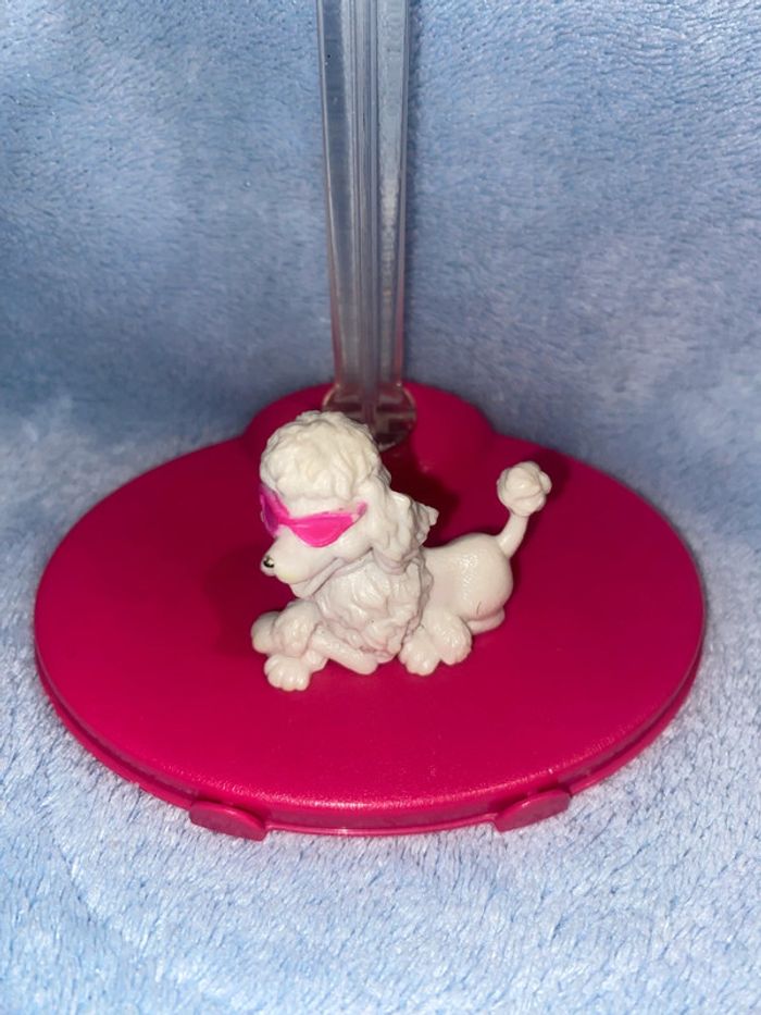 Caniche blanc à lunettes roses Barbie. Un petit manque de rose sur les lunettes. lMattel china 2009