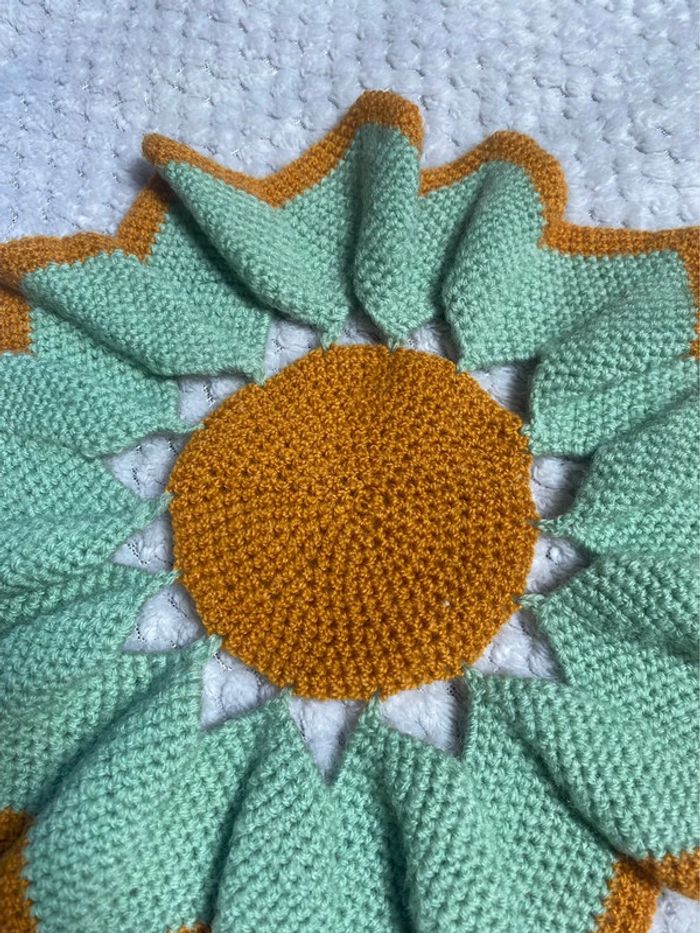 Vintage napperon fleur en laine - photo numéro 2